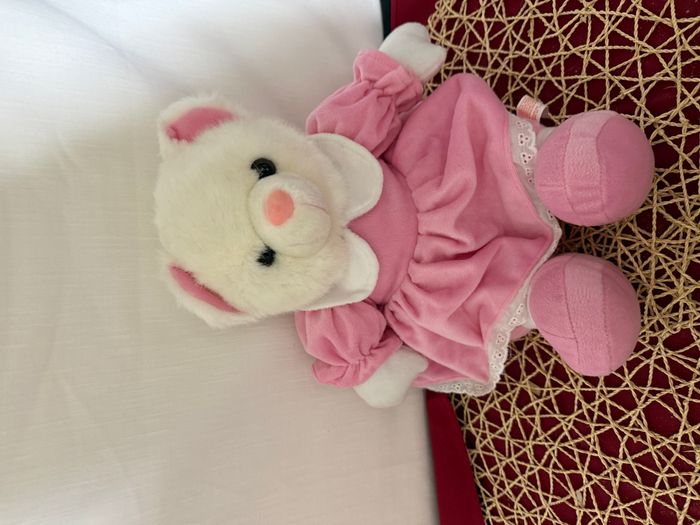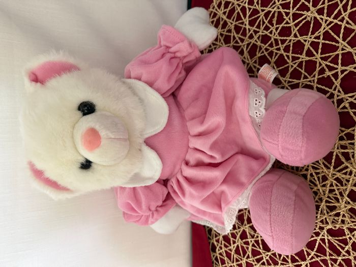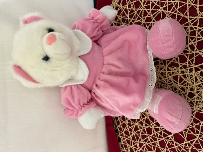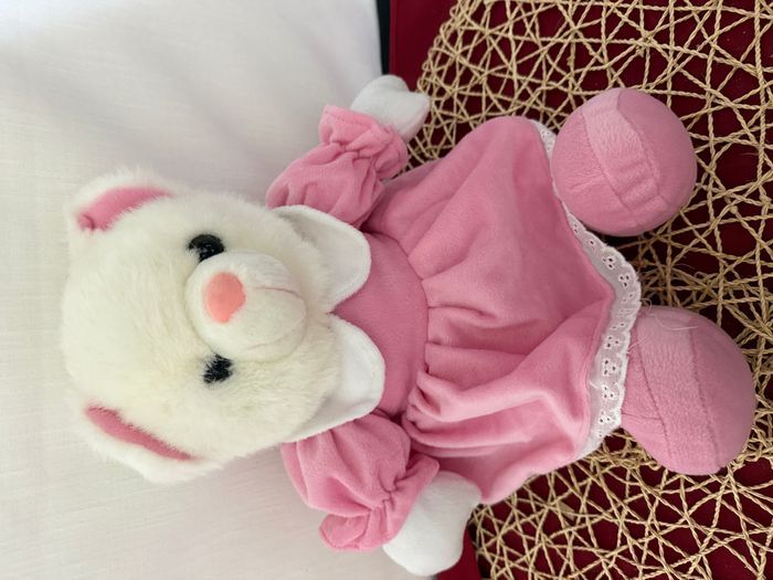 peluche vintage ours blanc robe rose 83