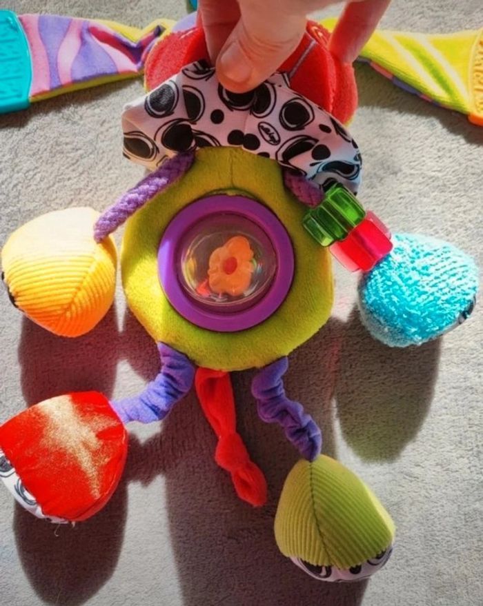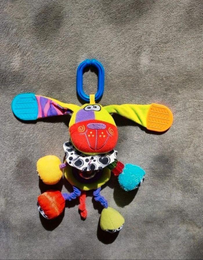 Ce chien doux favorise le développement tactile et sensoriel en utilisant des sons, des formes et des textures. Attachez-le à une poussette, un lit ou un siège auto pour éveiller la curiosité de bébé !