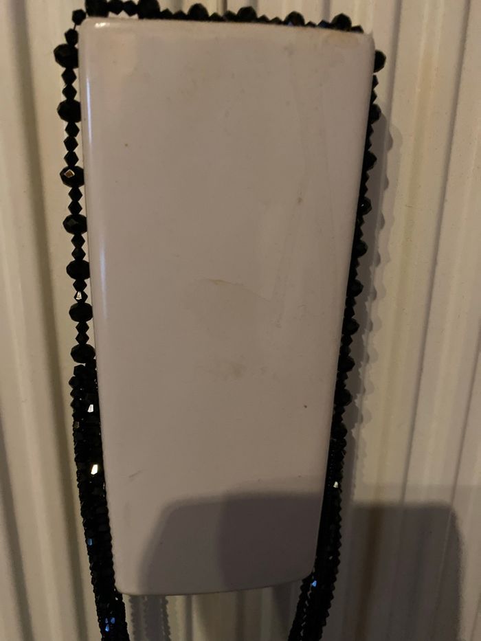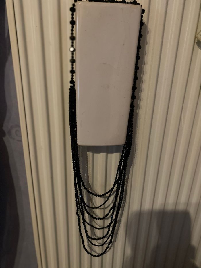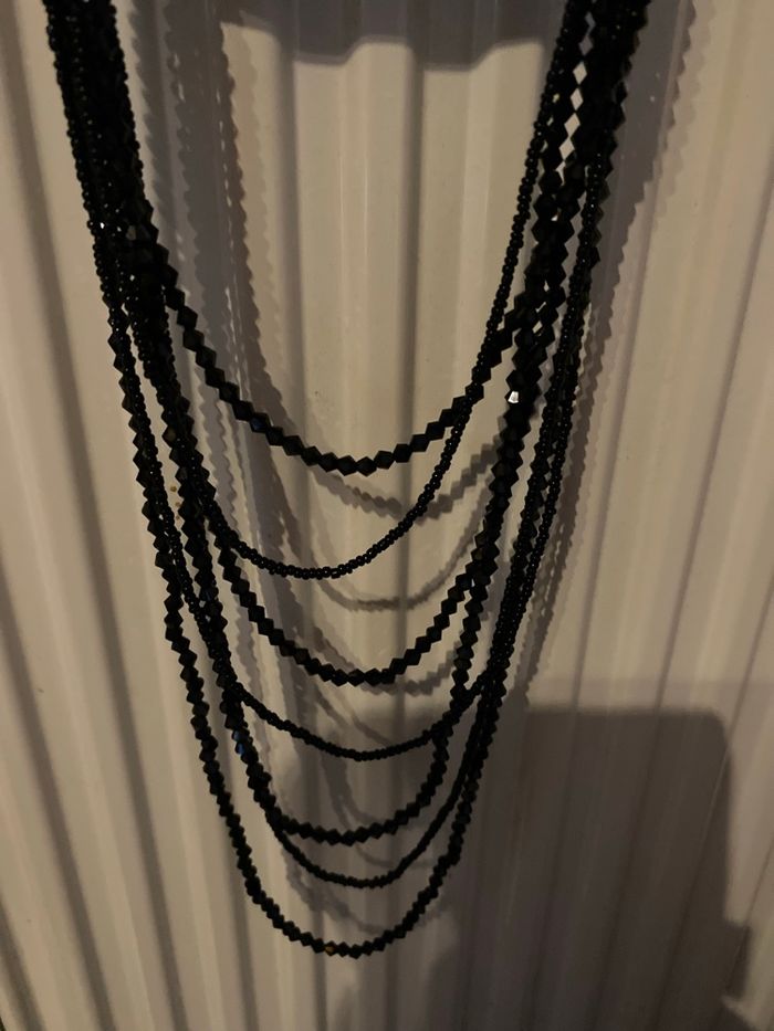Je vends ce collier fantaisie composé de multiples rangs de cônes noirs et brillants