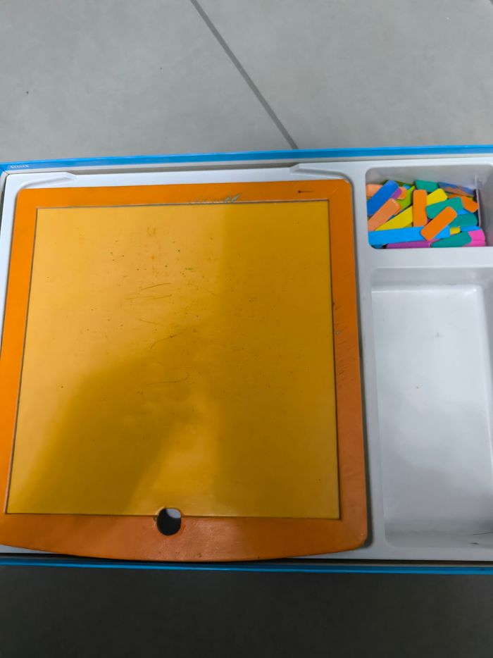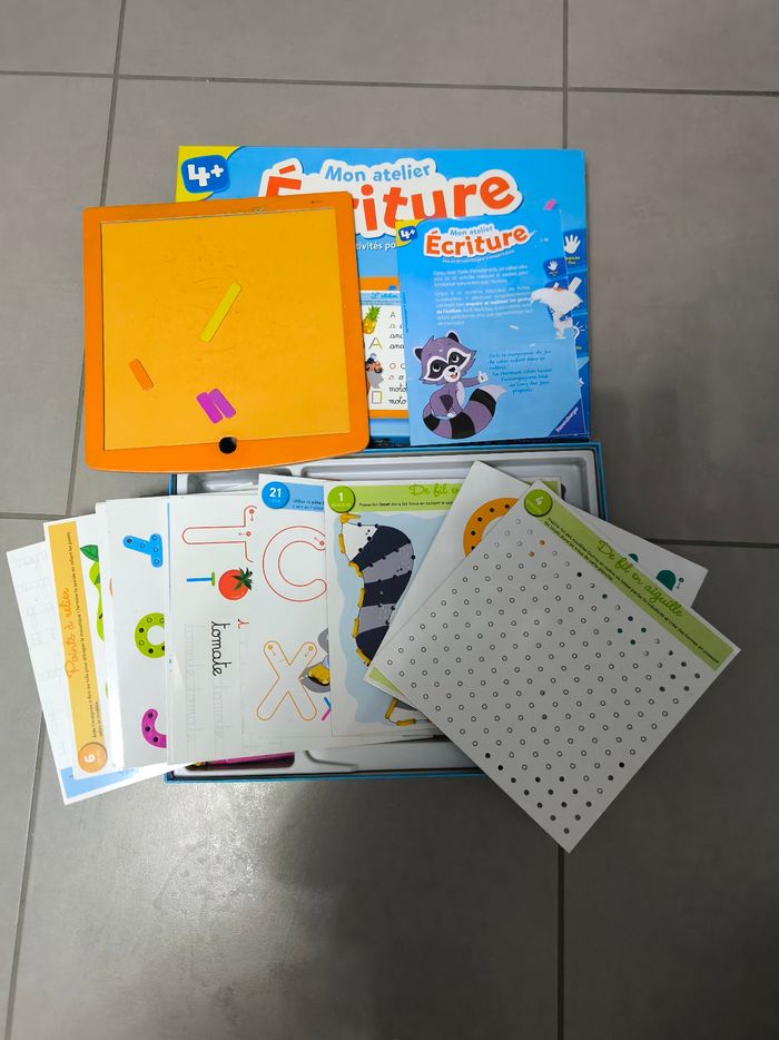 Il y a bien la tablette support avec les quatre fiches cartonnées les 24 fiches ardoises et 78 bâtonnets