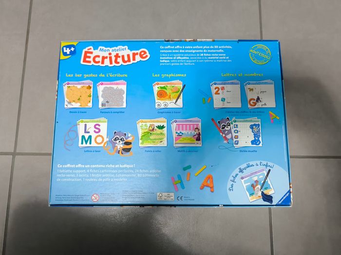 Il faudra remettre dans la boîte un feutre ardoise un chiffon de la pâte à modeler et 3 lacets