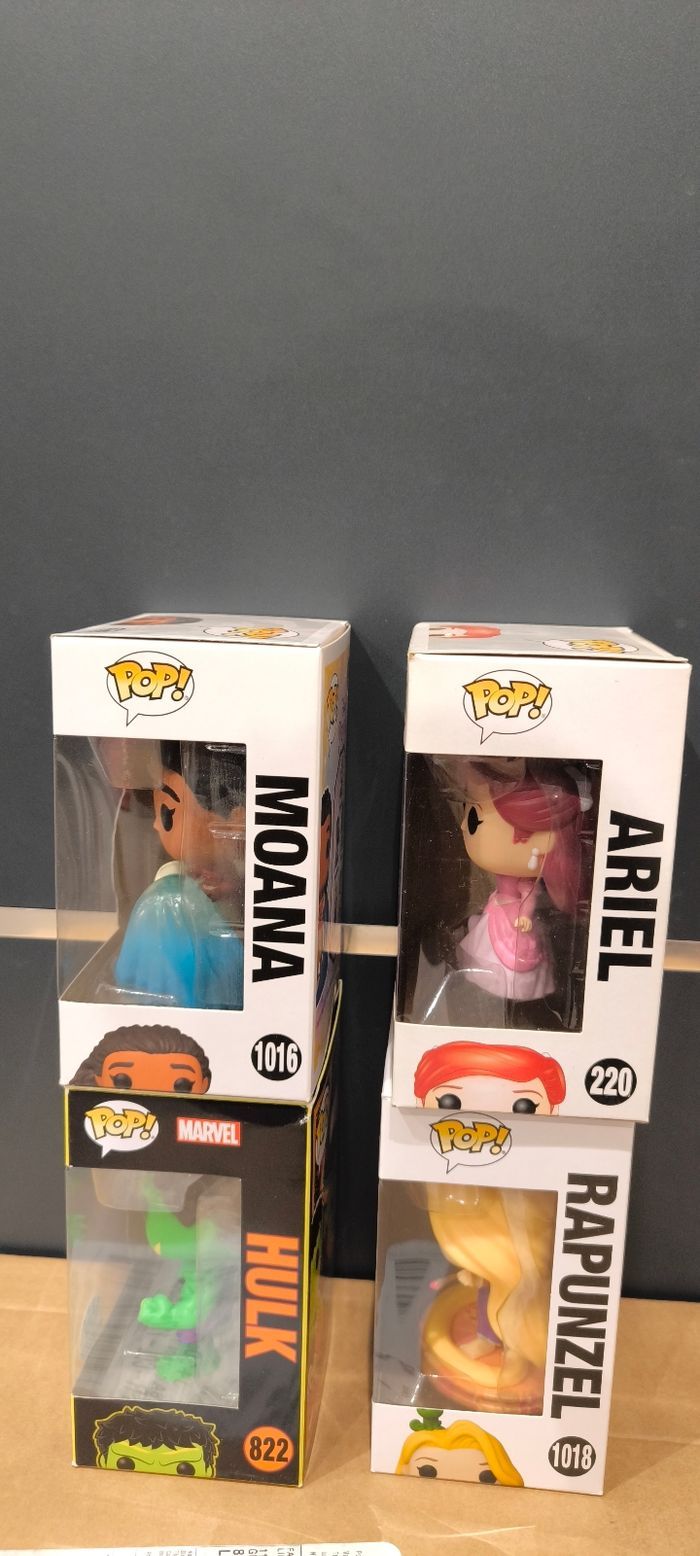 Lot de 4 Funko pop 220 Ariel 1016 Moana 822 hulk 1018 rapunzel