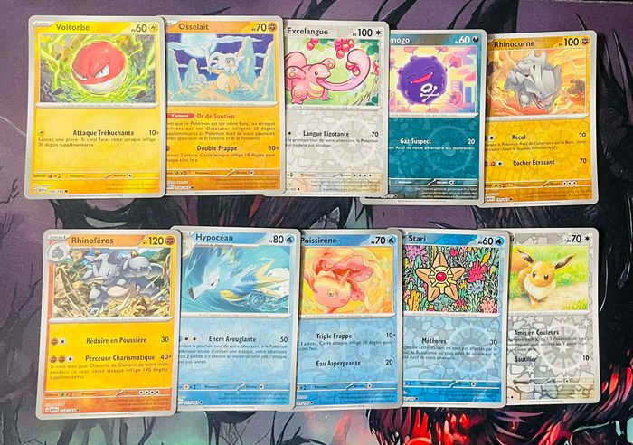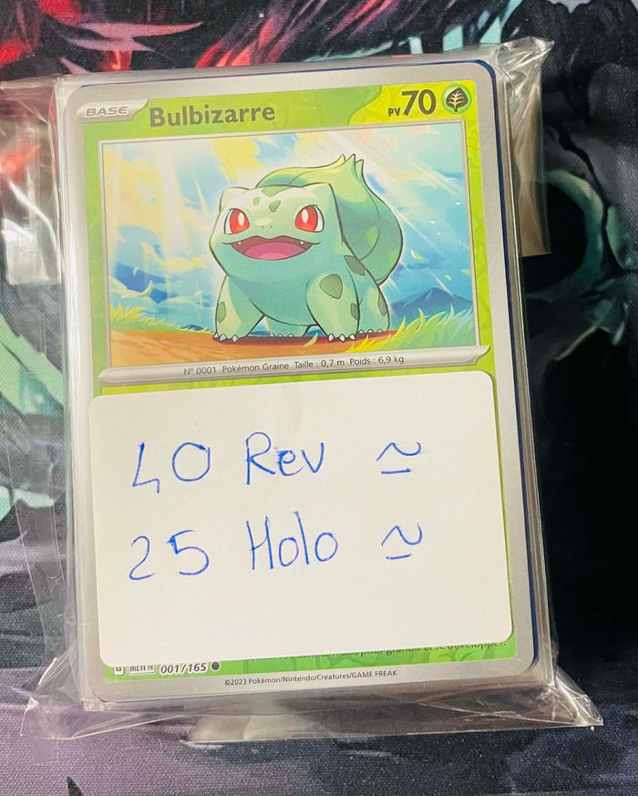 Bonjour, Je mets en vente un lot de 65 cartes Pokémon de la série 151 SANS DOUBLE, composé de : 40 cartes reverses 25 cartes holo Toutes différentes, sans doubles 👉 Les cartes sont en très bon état côté face : couleurs éclatantes, brillances bien conservées. 👉 Le côté pile présente de petits defauts, ce qui justifie le prix attractif proposé. Prix : 30 € 💡 Idéal pour compléter une collection ou démarrer un set 151 à moindre coût. N’hésitez pas à consulter mes autres annonces pour découvrir encore plus de cartes Pokémon et d’autres lots intéressants !