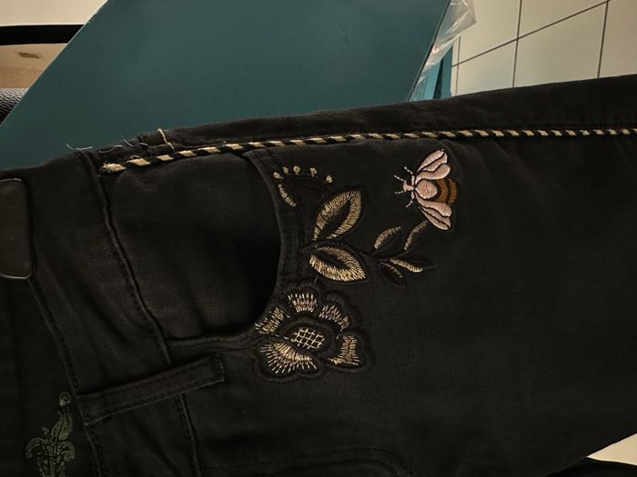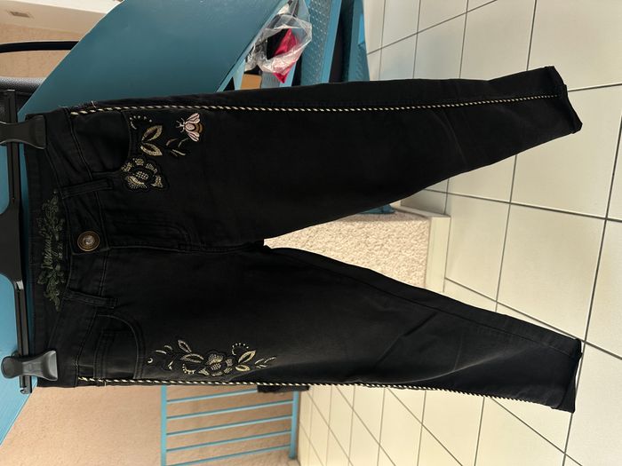 jeans Desigual noir taille 36 broderie et liserai sur les cotés