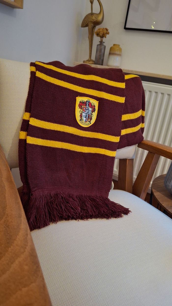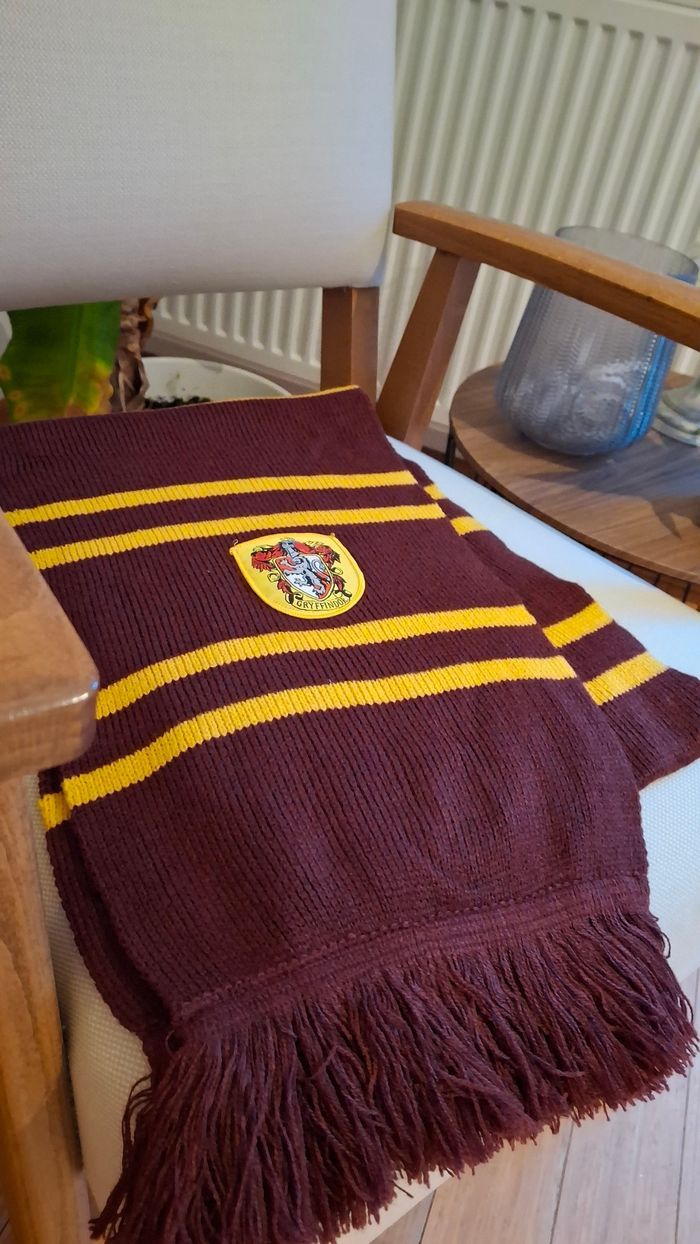 Jolie écharpe bordeaux et jaune Harry Potter Griifon d'or ! Jamais servie ! Juste lavée et repassée Envoi mondial relais uniquement svp 🤗