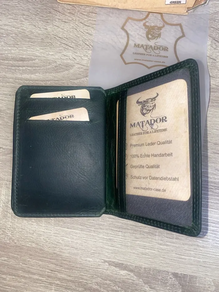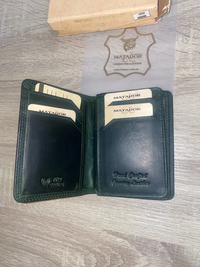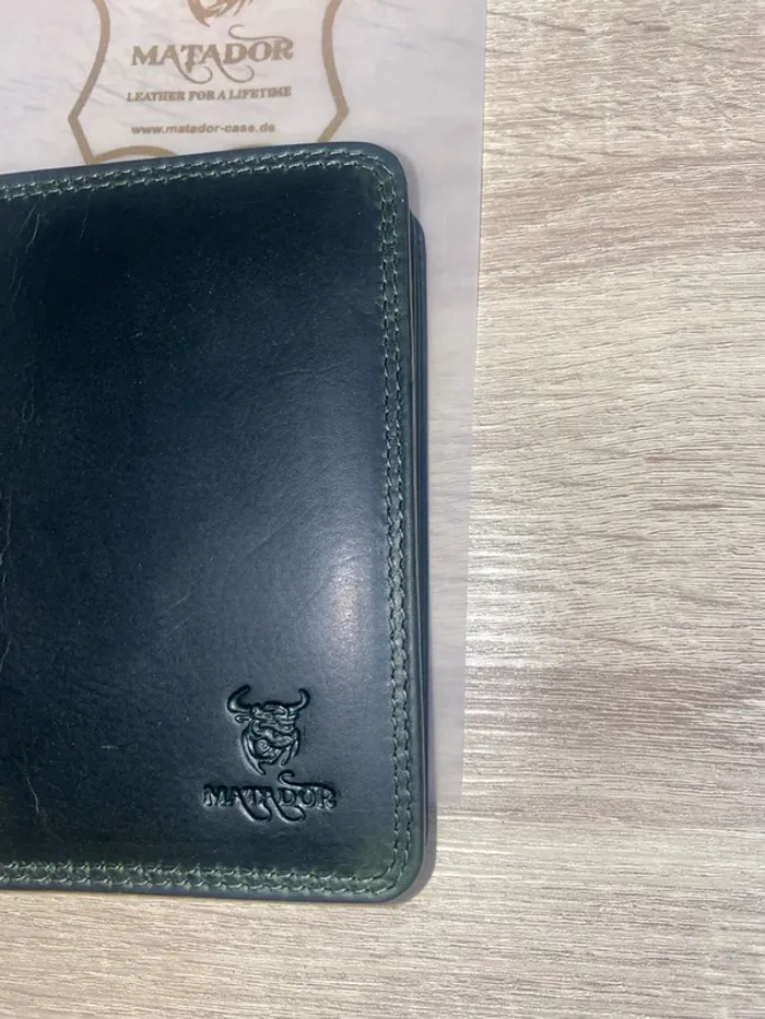 Porte cartes vert foncé cuir artisanat Matador neuf - n72p