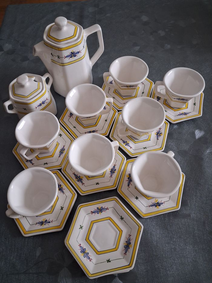 Service à café. Vintage 8 tasses 9 sous tasses 1 sucrier avec son couvercle 1 cafetière avec son couvercle Très très bon état