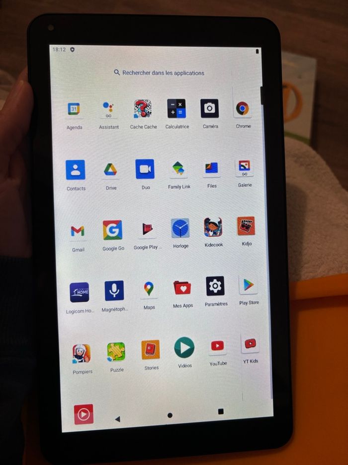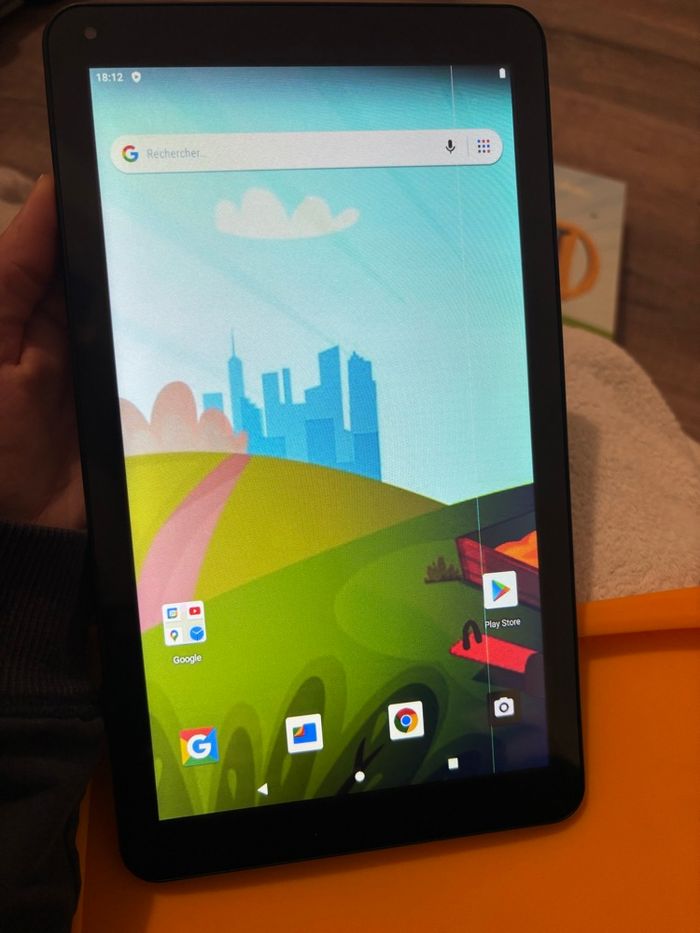Il y a un trait blanc qui est apparu quand j’ai voulu la retester pour la vente, n’a pourtant subi aucun choc et toujours rangé dans sa boîte. Origine inconnue. La tablette fonctionne néanmoins parfaitement, juste esthétiquement un trait blanc est visible sur l’écran.