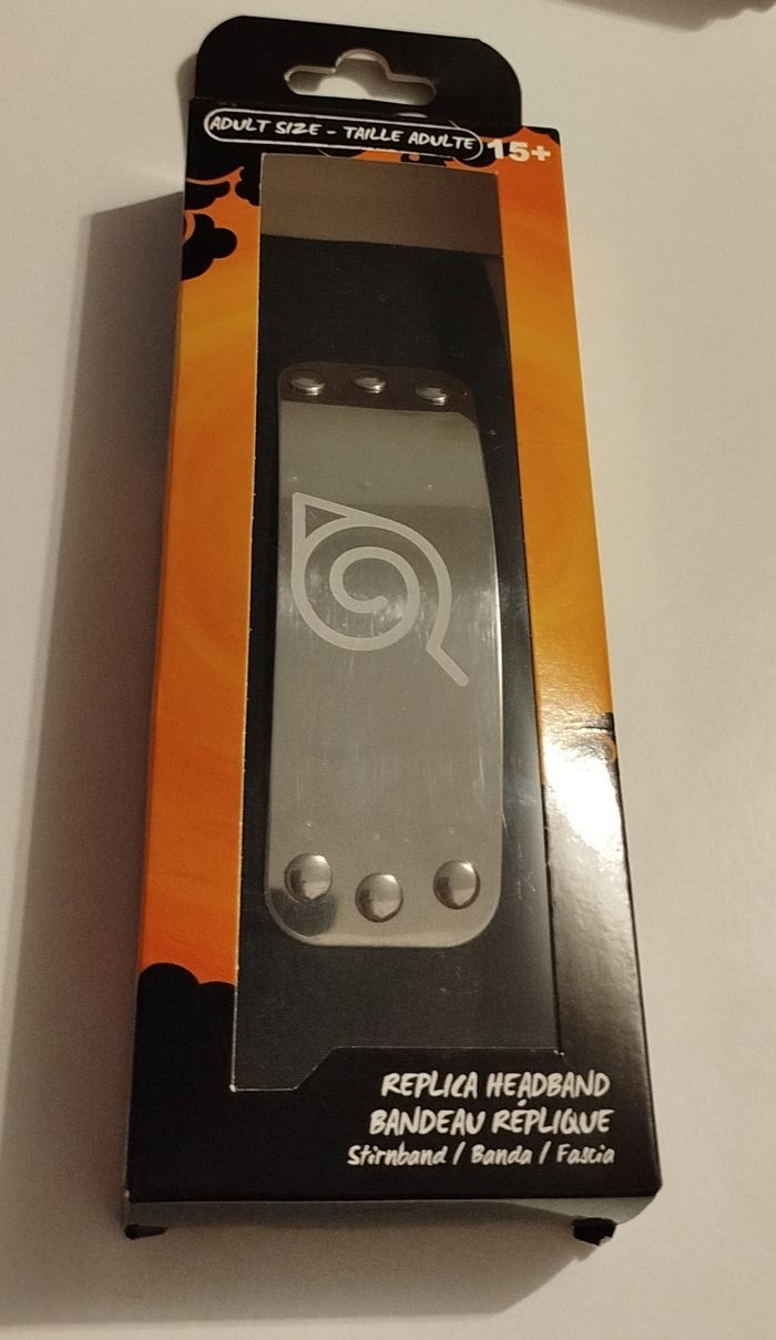 Bandeau Naruto en excellent état. Jamais sorti de sa boîte qui est toujours fermée. Seule la boîte est un peu abîmée (voir les 2 dernières photos).