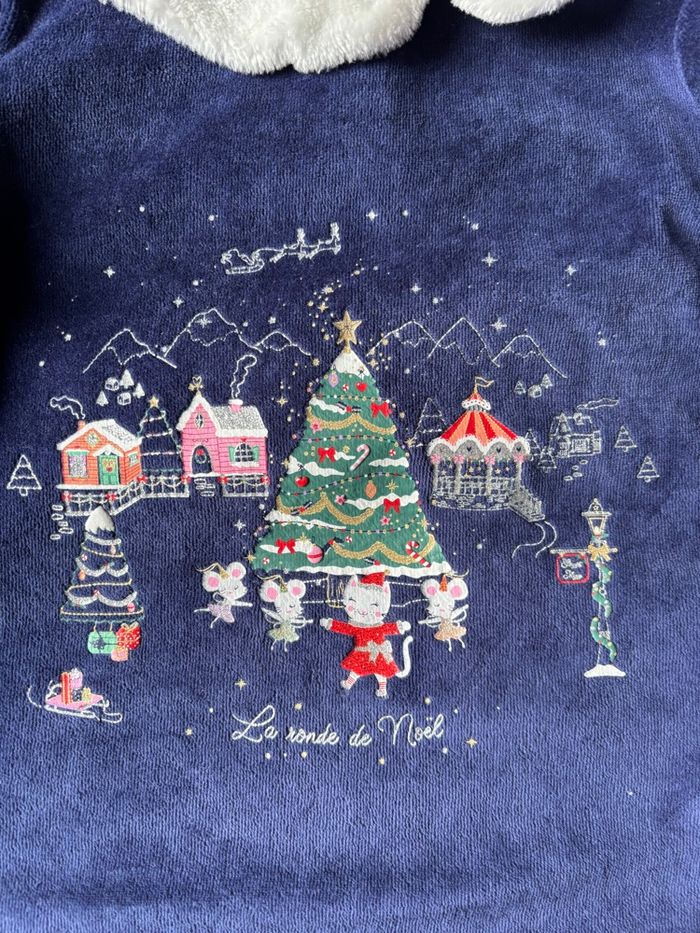 - Caractéristiques : Motif de Noël en parfait état non craqué , col en fourrure synthétique
