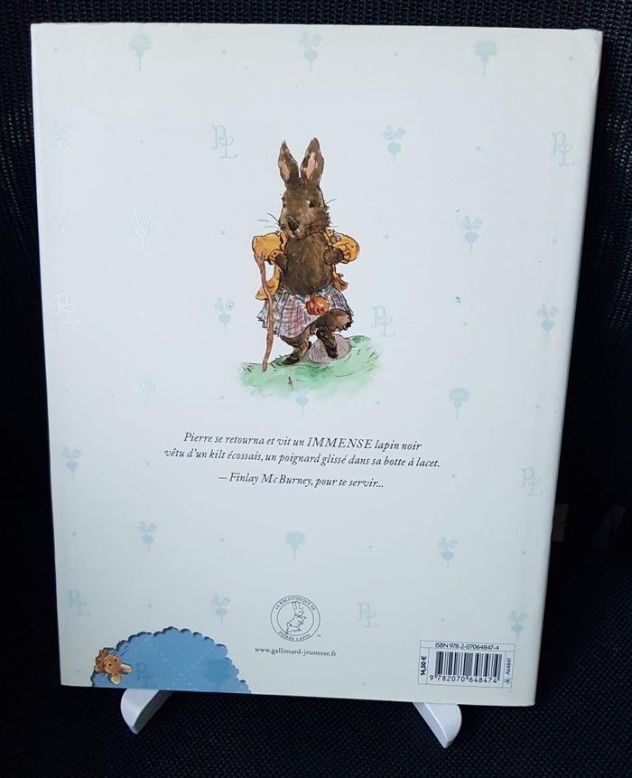 Je n'ai pas rencontré beaucoup de lapins tristes mais, quand ils le sont, cela se voit tout de suite : leurs oreilles tombent". Pierre Lapin est démoralisé, il lui faut un changement de décor. Il se glisse alors dans le jardin de M McGregor pour voler une laitue. Ce qui lui arrive ensuite va combler son désir de nouveauté. La découverte d'un panier de pique-nique le conduit bientôt jusqu'en Ecosse. C'est là que commence la nouvelle aventure de Pierre Lapin... Dans une histoire merveilleusement écrite par Emma Thompson, accompagnée de charmantes illustrations d'Eleanor Taylor, Pierre Lapin revient, toujours aussi malicieux, attachant et espiègle. Pierre Lapin se retourna et vit un IMMENSE lapin noir vêtu d'un kilt écossais, un poignard glissé dans sa botte à lacet. "Finlay Mc Burney, pour te servir..."