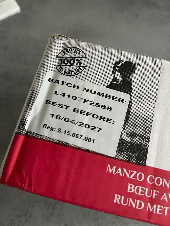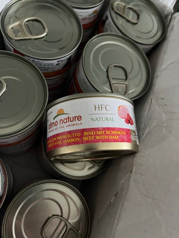 Lot de 23 boîtes de nourriture pour chien bœuf jambon almo nature Date de péremption : 2027 95g la boîte