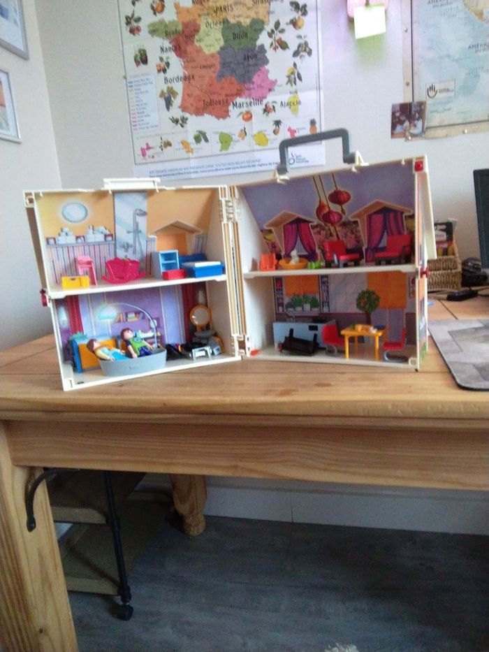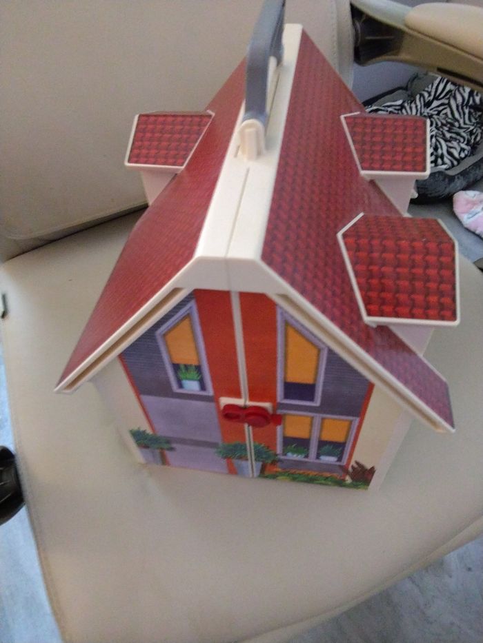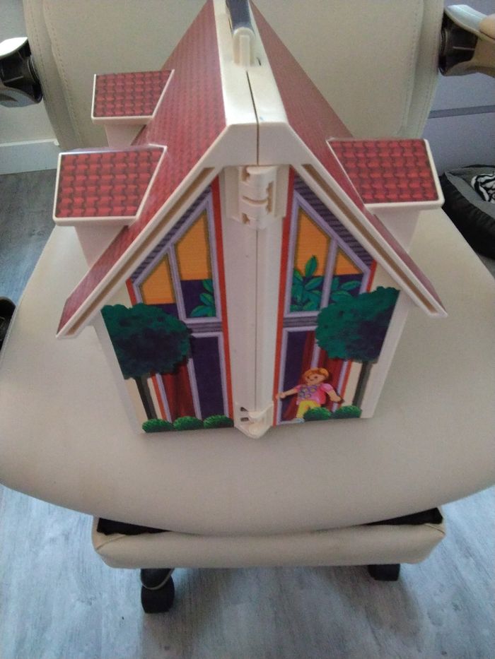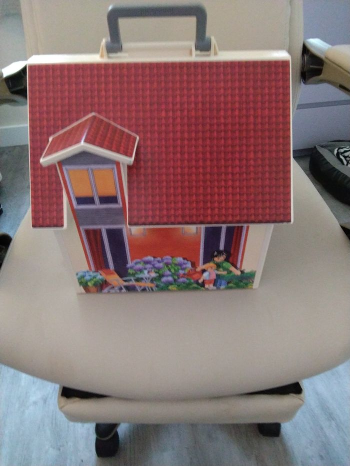 Maison transportable playmobil en excellent état avec meubles, personnages et accessoires - photo numéro 1