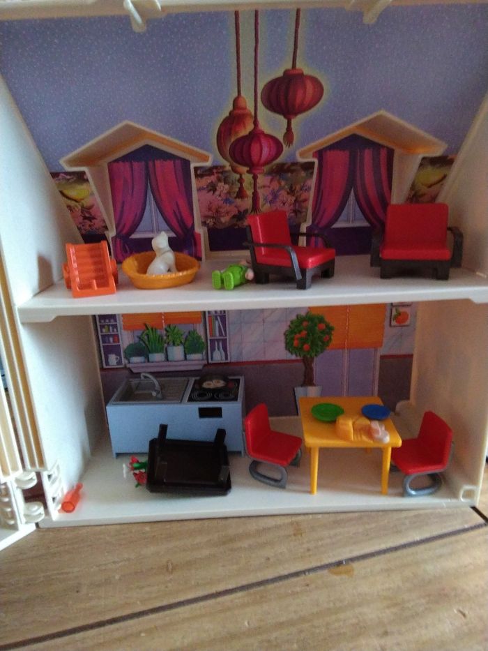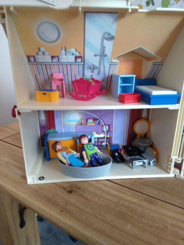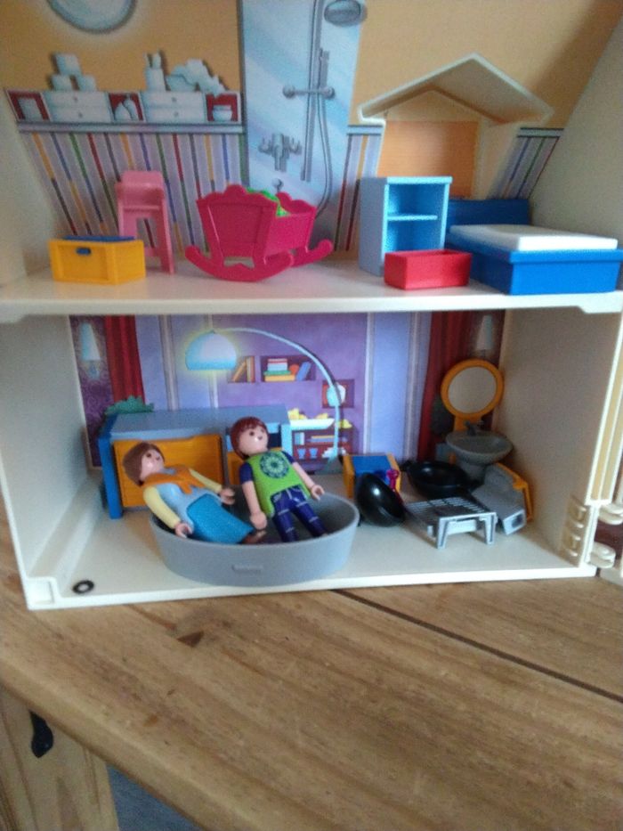 Maison transportable playmobil en excellent état avec meubles, personnages et accessoires - photo numéro 3
