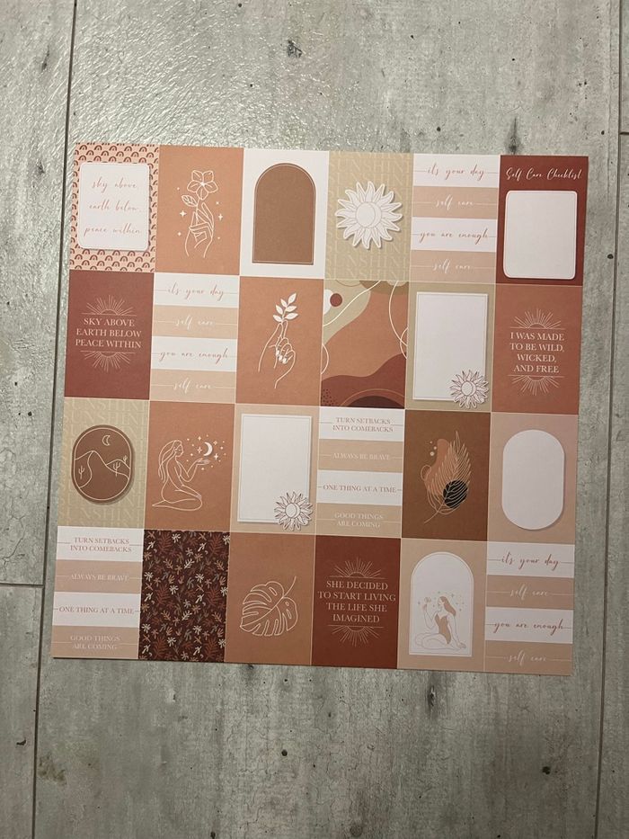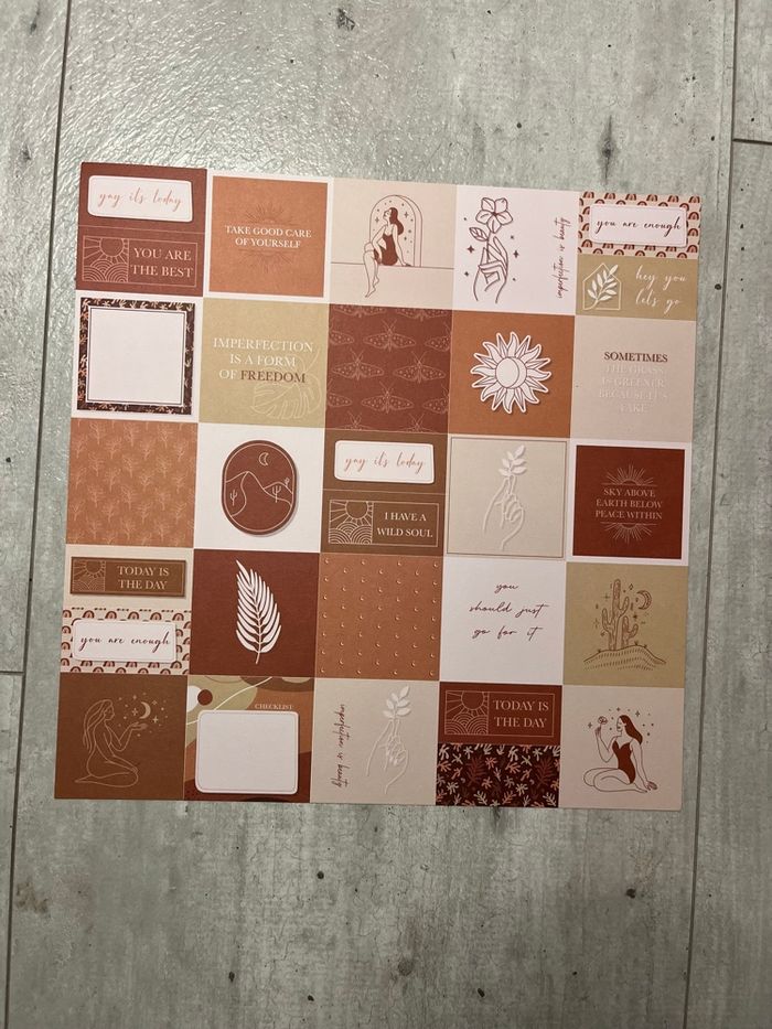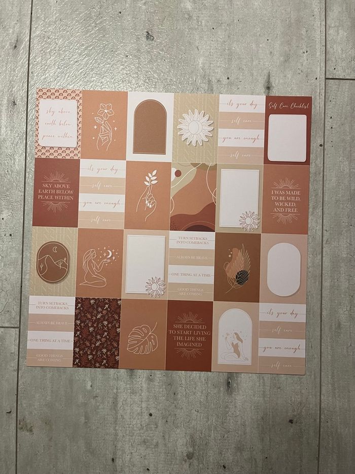 Je vends ce lot de 6 feuilles de scrapbooking dans des tons chauds et neutres.