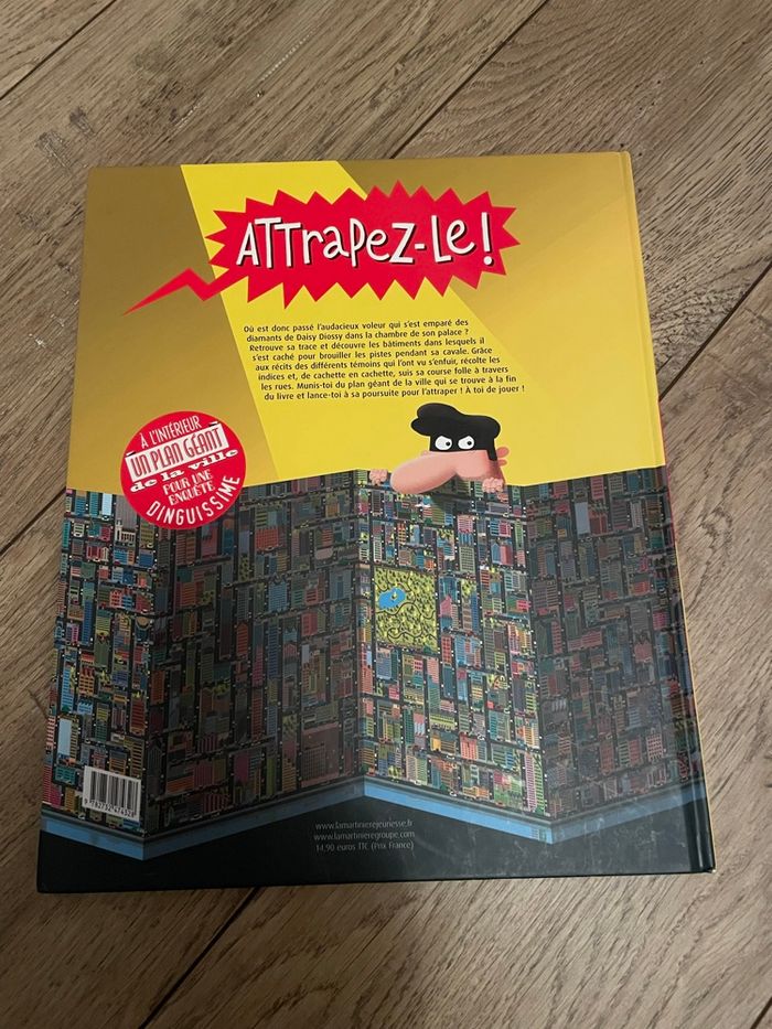 Où est donc passé l'audacieux voleur qui s'est emparé des diamants de Daisy Diossy dans la chambre de son palace ? Retrouve sa trace et découvre les bâtiments dans lesquels il s'est caché pour brouiller les pistes pendant sa cavale. Grâce aux récits des différents témoins qui l'ont vu s'enfuir, récolte les indices et, de cachette en cachette, suis sa course folle à travers les rues. Munis-toi du plan géant de la ville qui se trouve à la fin du livre et lance-toi à sa poursuite pour l'attraper ! A toi de jouer !
