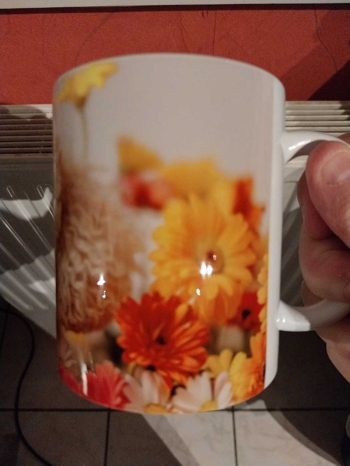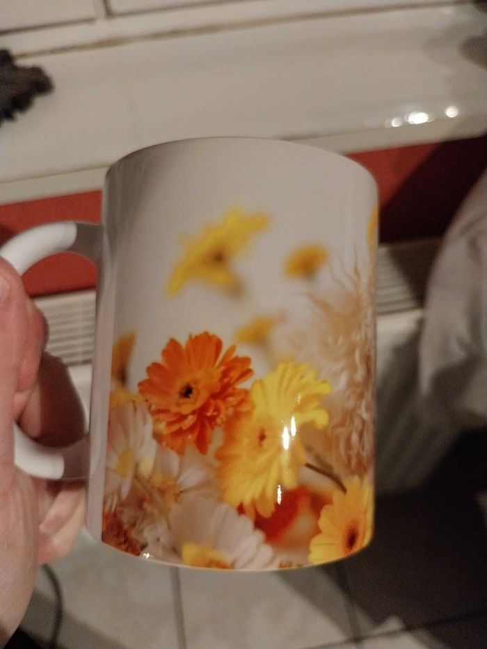 Mug caniche avec fleurs.
