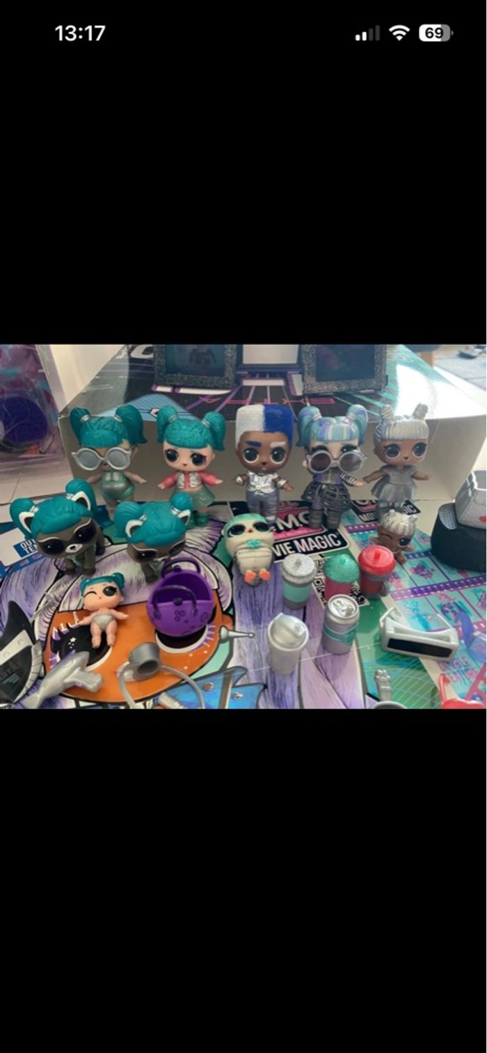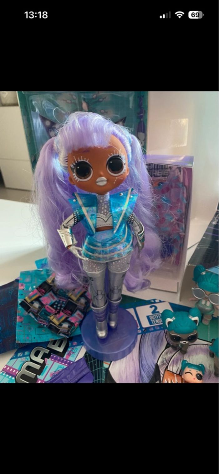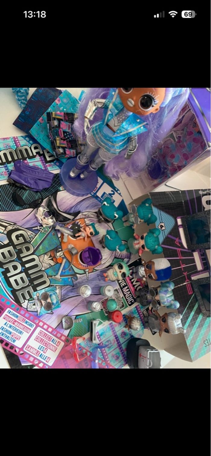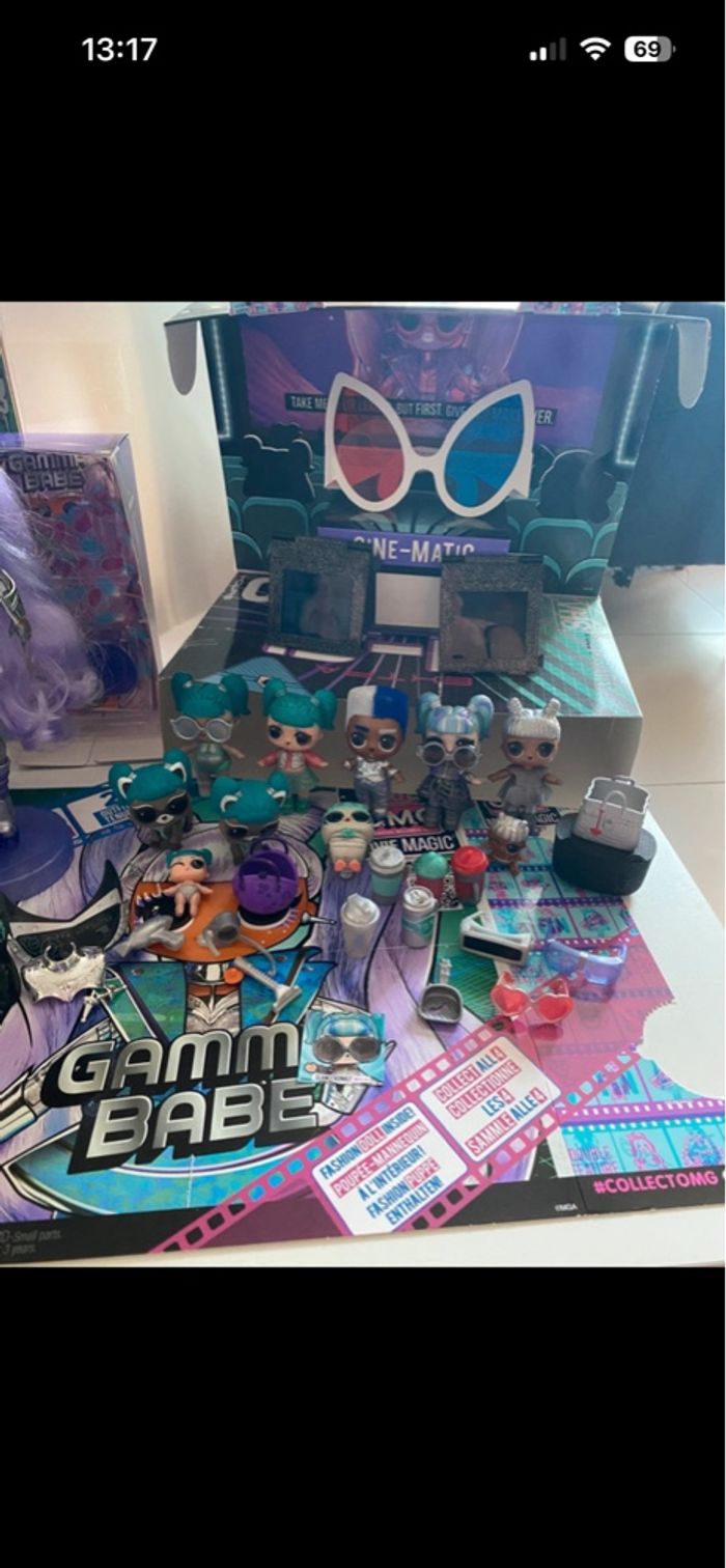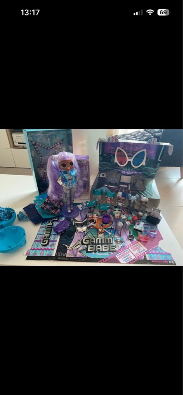 L.O.L. Surprise! OMG Movie Magic Gamma Babe with 25 Surprises & Movie Set - Series 1 - Contains Outfits, Accessories En excellent état - complète Vendue avec sa boîte d’origine Inclus également famille complète avec leurs accessoires : - Glamstronaut version classique et version paillettes + version movie magic - Lil Glamstronaut - Tinz - Tinz Bro - Lil Tinz version classique et version movie magic (voir photo a part) - Pet RacconStronaut - Pet Wizard of Owl