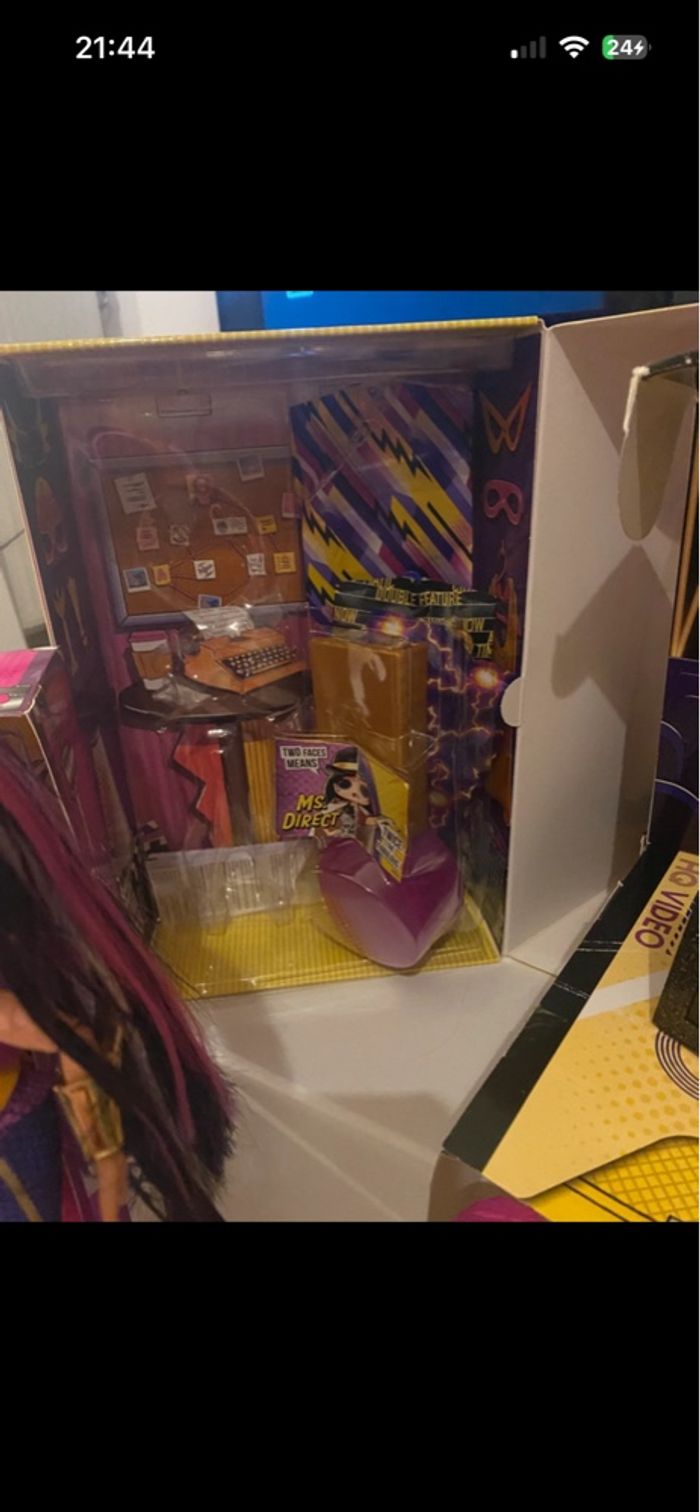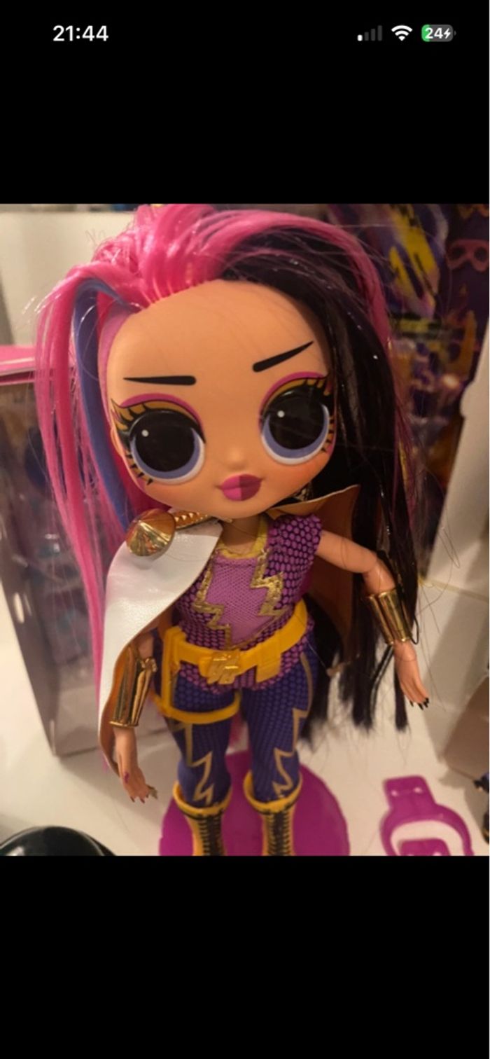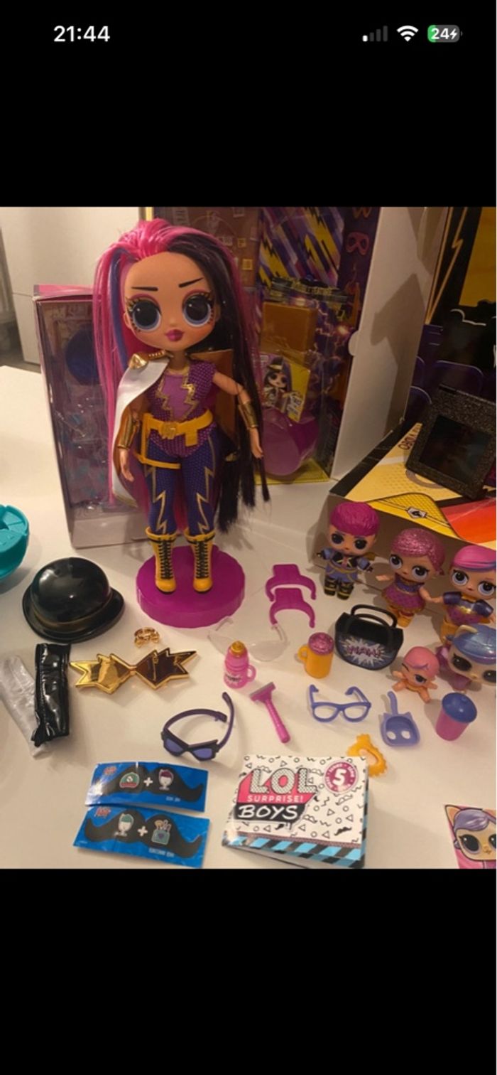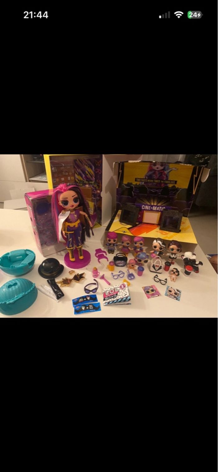 LOL Surprise OMG Movie Magic MS. Direct - Model Doll with 25 Surprises & Movie Set - Series 1 - Contains Outfits, Accessories En excellent état - complète Vendue avec sa boîte d’origine Inclus également famille complète avec leurs accessoires : - Super B.B - Lil Super B.B - Super Dude - Pet Su-Purr Kitty version movie magic - Black Tie - Black Tie Doll - version movie magic - Lil Black Tie - Pet Black Stripe
