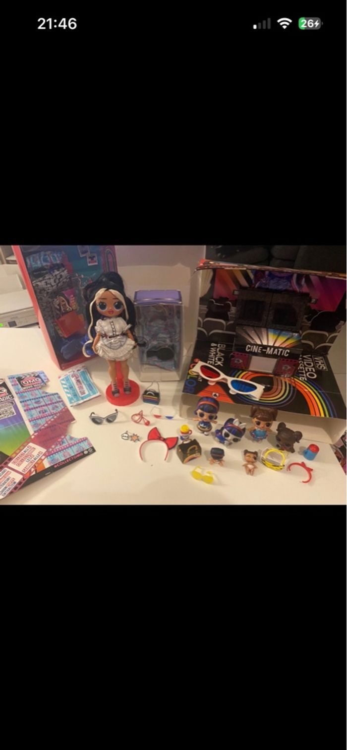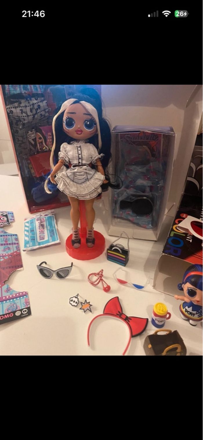 L.O.L Surprise OMG Movie Magic Starlette - Poupée Mannequin avec 25 Surprises En excellent état - complète Vendue avec sa boîte d’origine Inclus également famille complète avec leurs accessoires : - Pop Heart - Pop Heart movie magic (absente de la photo de groupa ajoutée après voir photos individuelles) - Lil Pop Heart - Hop Heart - Kansas Q.T. - Kansas K9 et Kansas K9 version movie magic (ajouté après voir photos individuelles) - Lil Kansas Q.T.