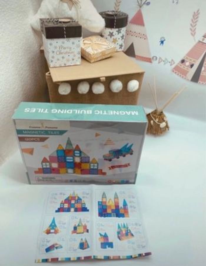 Fabriqué en plastique ABS non toxique et résistant. Design à bords arrondis sans arrêtes pointues pour éviter de blesser les petites mains de vos enfants. Les enfants peuvent créer des formes planes en 2D ou des structures géométriques en 3D. Ils peuvent créer de nombreuses formes: chèvres, maison, pentagone, cœur, moulin, avion, balle,... Convient pour tous les âges à partir de 3 ans inclu. Seul ou en groupe, c’est une excellente manière de passer de précieux moments en famille et avec ceux que vous aimez ! Jouets neufs et emballés ! Idées cadeaux 🎁 Nombre de pièces : 120 pièces #blocsdeconstruction #magnetiques #jeuxeducatifs #anniversaire #vacances #magnetiques #blocsdecouleurs #blocsmagnetiques #construction #jouets #jeux #enfants #cadeaux #jeuxeducatifs #anniversaire #motricite #scolaire #eveil #noel #christmas #christmasgift #school #christmasgiftideas #christmaspresent #carreauxmagnetiques