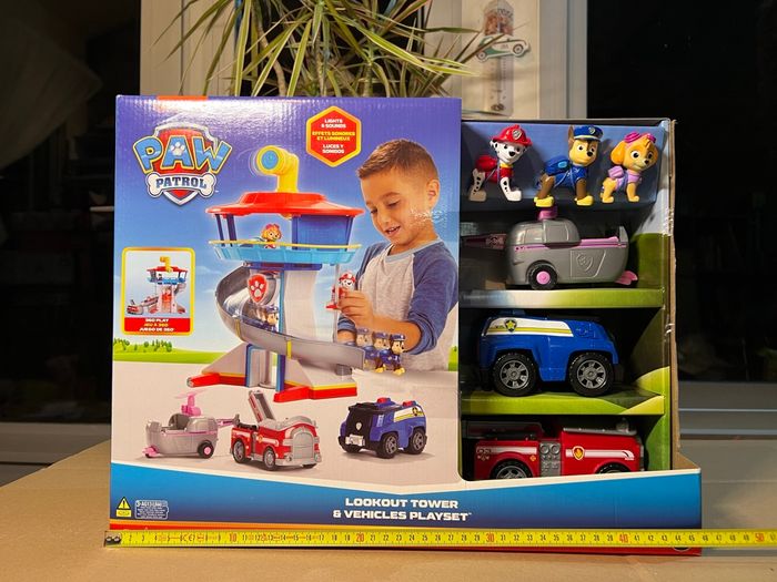 Code -15€ : Jusqu'au: L'article neuf dans le carton d'origine. Tour d'observation de la Patrouille Patrouille (Quartier Général Pat' Patrouille) avec 3 véhicules et figurines: - Le tour général Pat patrouille - Le camion Marcus et Marcus - Le camion Chase et Chase - L'avion Stella et Stelle #tourpatpatrouille #pattepatrol #quartiergénéral #pinterest #chasse #stella #marcus
