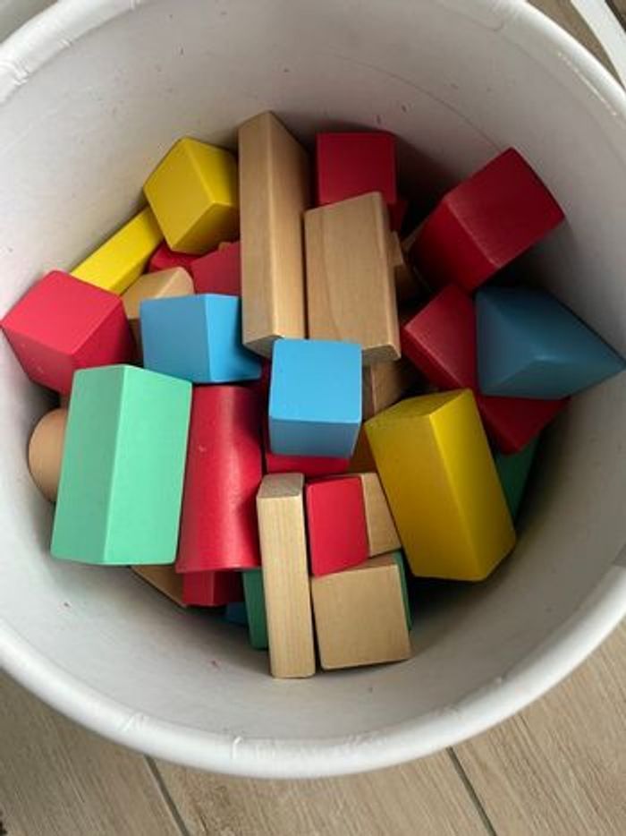 Seau de cubes de construction en bois formes - photo numéro 1