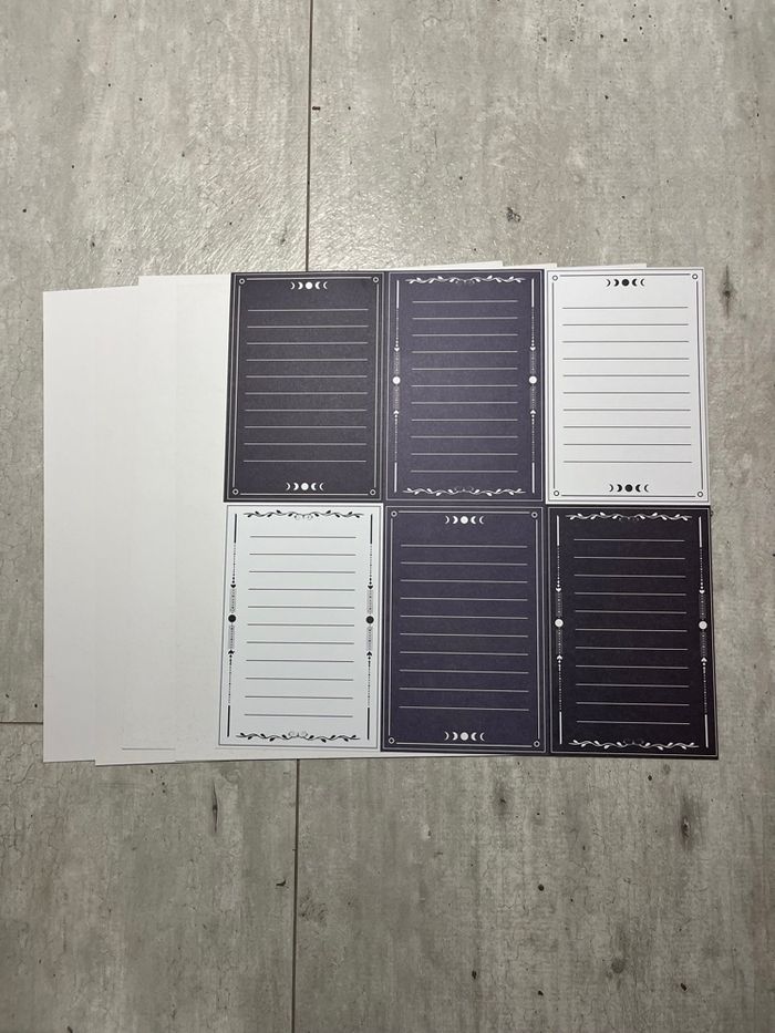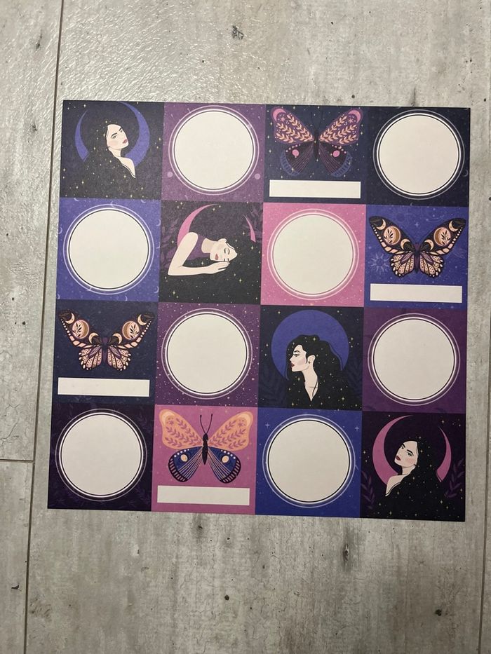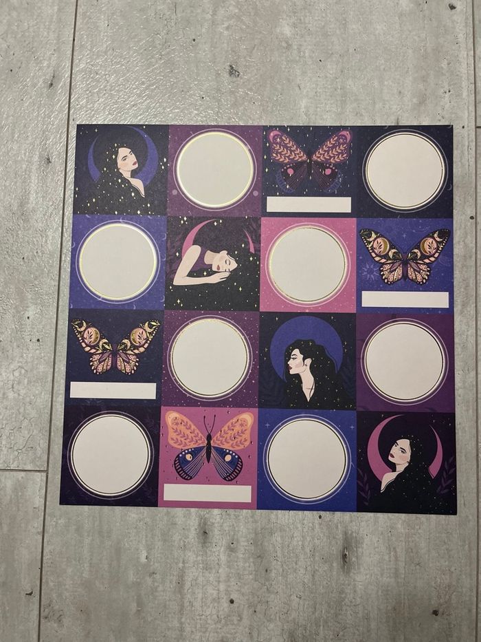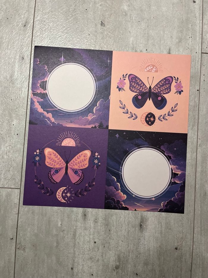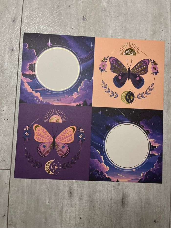 Je vends ce lot de 5 feuilles de scrapbooking aux motifs lunaires et papillons.