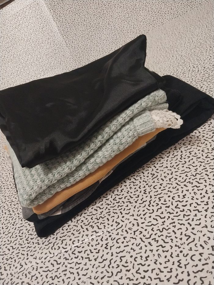Je vends un lot de 5 vêtements femme, parfait pour le quotidien ou le bureau.