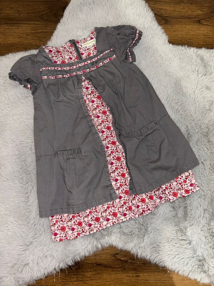 Robe grise motif florale rose - 3 ans - Vertbaudet