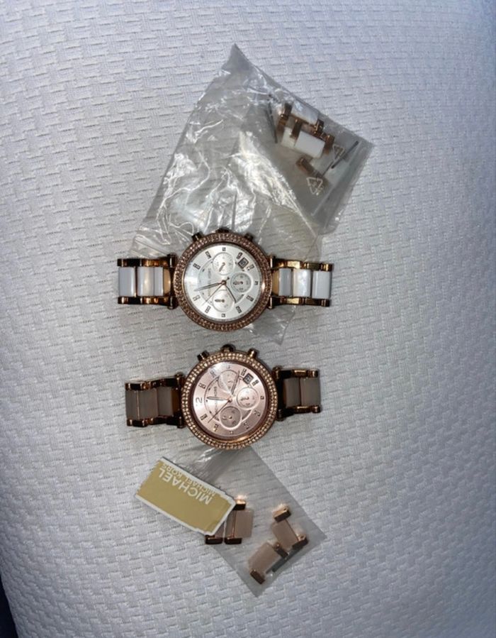 Bonjour , je vends un lot de deux montres Michael Kors (une rose et or / une blanche et or )