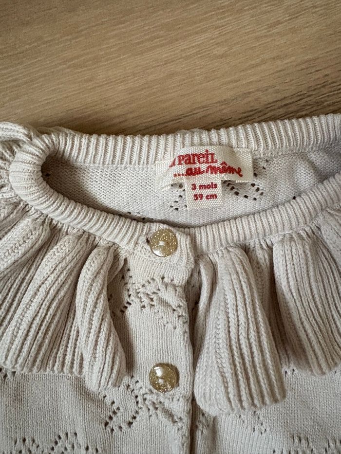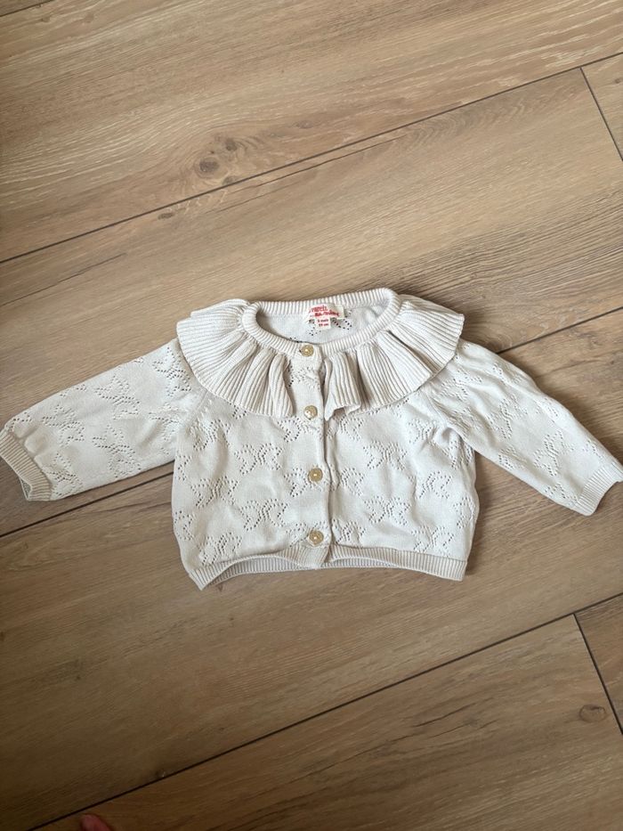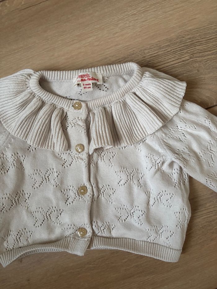 Gilet avec col Claudine et papillon ajouré 3 mois TBE J’ai pleins d’autres articles en 3 mois filles n’hésitez pas à me demander