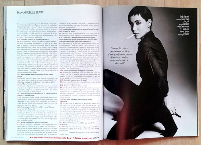 Magazine Elle n°3356 avril 2010 spécial Emmanuelle Béart - photo numéro 7