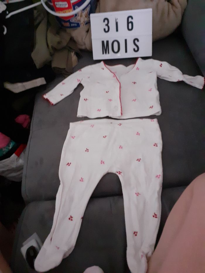 Petite tache sur le haut Il faudra remettre un élastique au pantalon Hesitez pas à faire des lot pour économiser les frais de port Possibilité de remise en main propre sur la rochelle dompierre lagord mireuil puilboreauwo