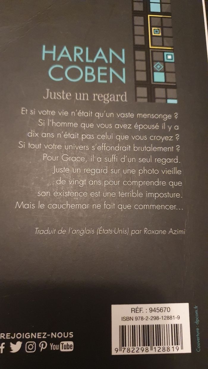 Je vends ce roman policier "Juste un regard" de l'auteur Harlan Coben. - Titre : Juste un regard - Auteur : Harlan Coben - Genre : Policier - État : État satisfaisant, taché, voir photo