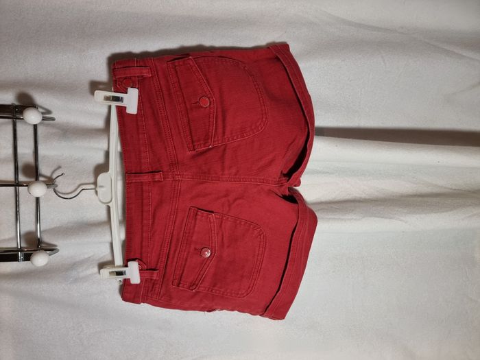 Mini-short en jean femme rouge taille 40. En très bon état. Envoi rapide et soigné. Négociable.