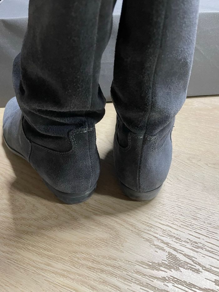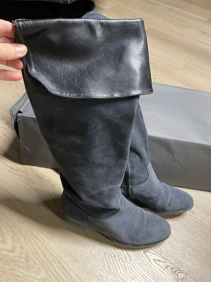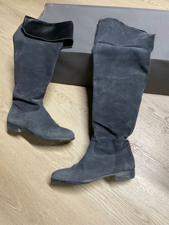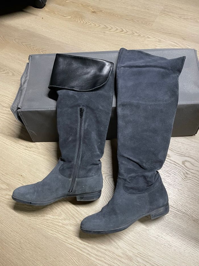Bottes bleus ou cuissardes avec revers noirs Marque benetton Vendu avec boîtes de rangement À vendre aussi même modèle en marron