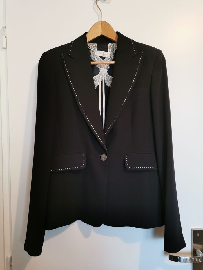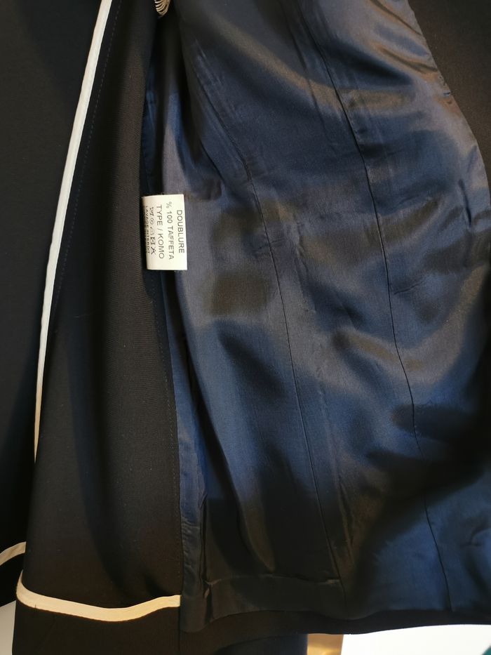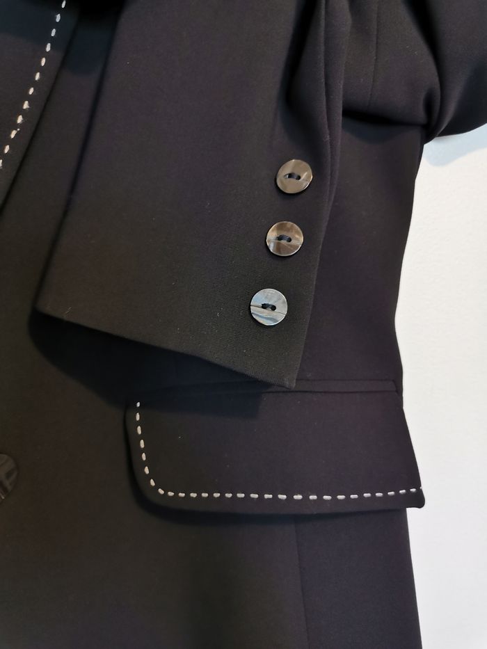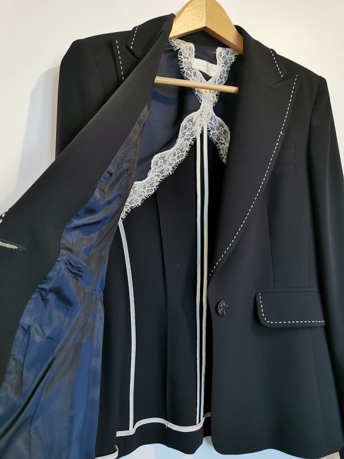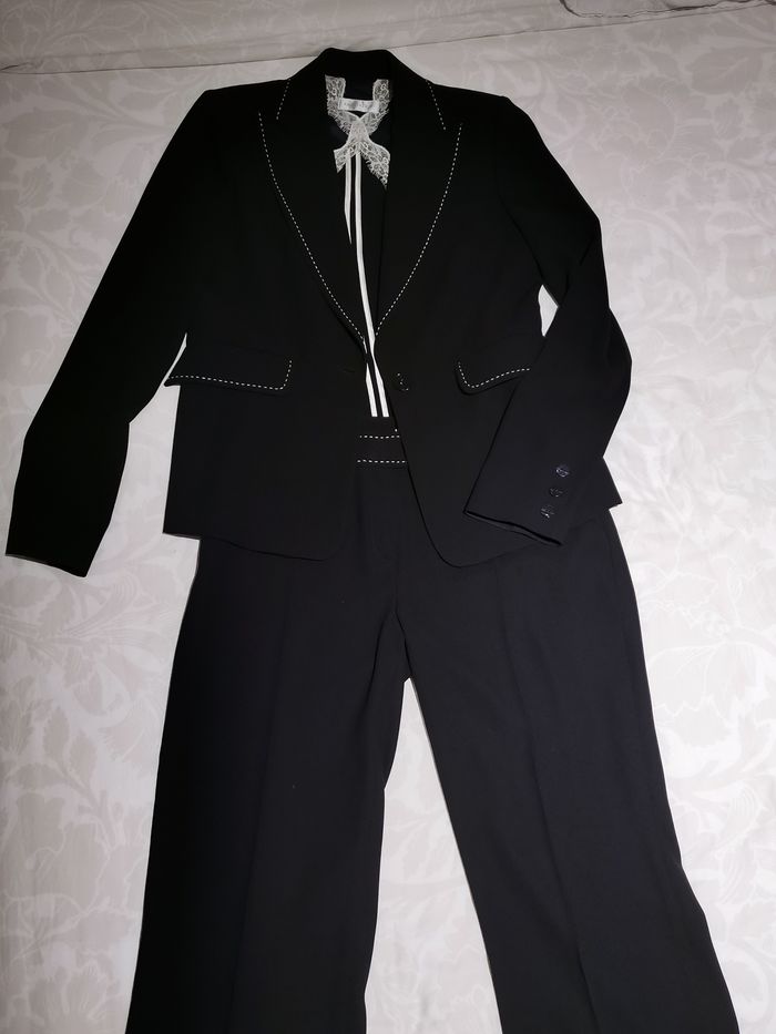 #tailleur #ensemblevestepantalon #couturesblanches #surpiqurespointillées #exaltation #cérémonie #fêtes #bureau #femme40