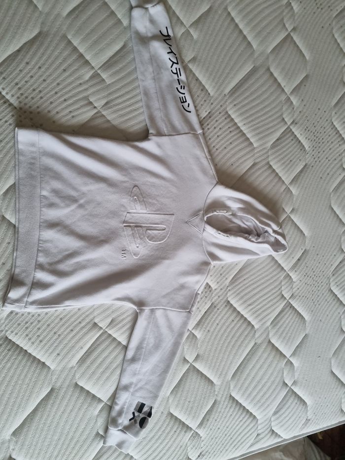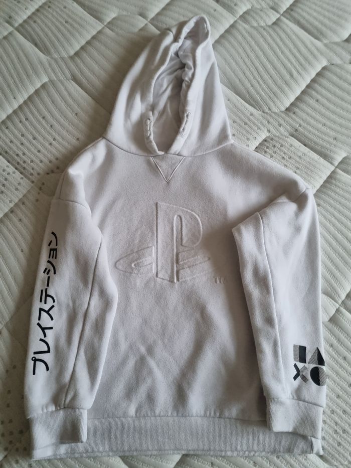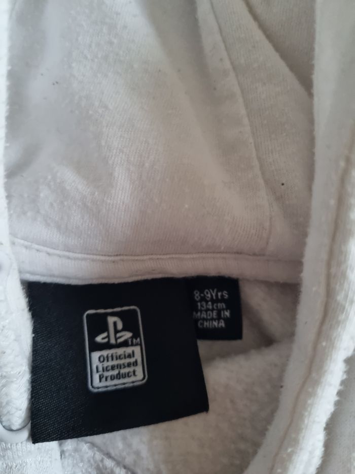 Pull blanc a capuches Playstation, 8,9 ans 134cm. Très bon état
