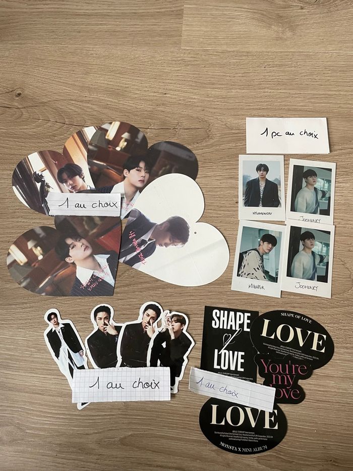 vnted et le bon coin : woosanra beebs : floraritz 📓 shape of love 👥 Monsta X #woosanraMONSTAX 🗂️ version Love 📔 inclus avec photocard Hyungwon et les pre-ordre benefit sauf la photocard unit, vous pouvez choisir les inclusions: stickers membres: ✅changkyun x2 ✅kihyun ✅hyungwon stickers: ✅love x2 ✅shape of love ✅you’re my love polaroïd: ✅hyungwon ✅jooheon x2 ✅minhyuk cœur: ✅jooheon x2 ✅hyungwon ✅kihyun poster: ✅changkyun ✅minhyuk ✅hyungwon x2 🔎 très bon état ➕ les trois autres versions sont disponibles dans mon dressing