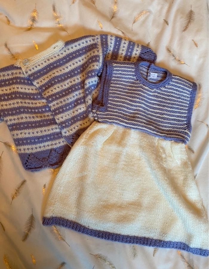 🧸 Adorable ensemble pour bébé fille, au style vintage, en laine faite main, idéal pour les saisons fraîches 🍂❄️ Un ensemble unique, plein de charme, parfait pour un cadeau ou une tenue spéciale.