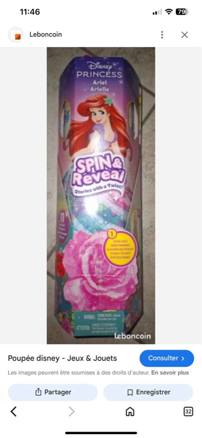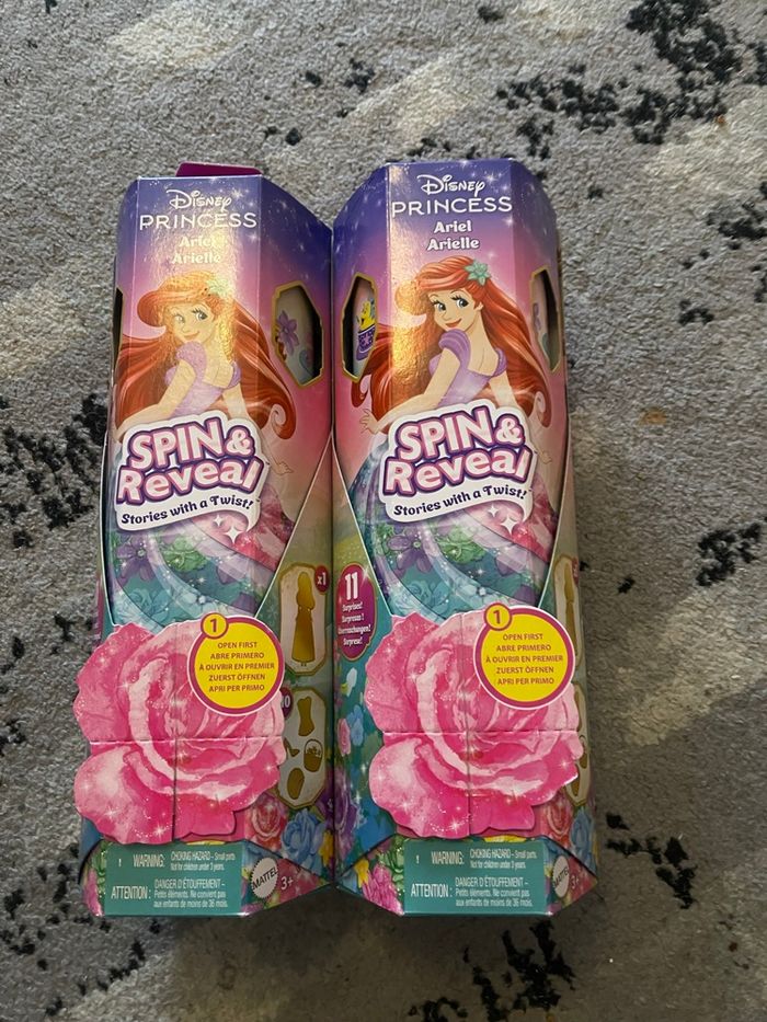 vends lots de 2 poupée Disney Princesse Ariel de la collection "Spin & Reveal". Gamme / Licence : Princesse - Personnage : Ariel Fonctionnalités : Spin & Reveal, avec accessoires à découvrir État neuf. 12€ l’unité 21 € les deux.