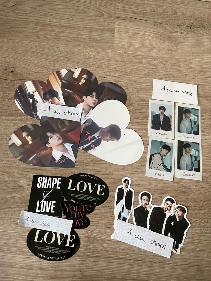 vnted et le bon coin : woosanra beebs : floraritz 📓 shape of love 👥 Monsta X #woosanraMONSTAX 🗂️ version Originality 📔 photocard unit kihyun & minhyuk, la photocard individuelle n’est pas incluse. les pre-ordre benefit sont inclus, vous pouvez choisir les inclusions: stickers membres: ✅changkyun x2 ✅kihyun ✅hyungwon stickers: ✅love x2 ✅shape of love ✅you’re my love polaroïd: ✅hyungwon ✅jooheon x2 ✅minhyuk cœur: ✅jooheon x2 ✅hyungwon ✅kihyun poster: ✅changkyun ✅minhyuk ✅hyungwon x2 🔎 très bon état ➕ les trois versions sont aussi disponibles dans mon dressing