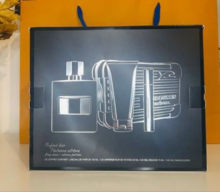 Le coffret complet est idéal pour offrir : parfum + format voyage + gel douche + sac bandoulière.