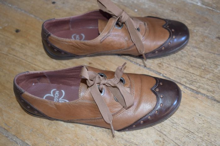 Bicolore marron, attache ruban type derbies Cuir type derbies