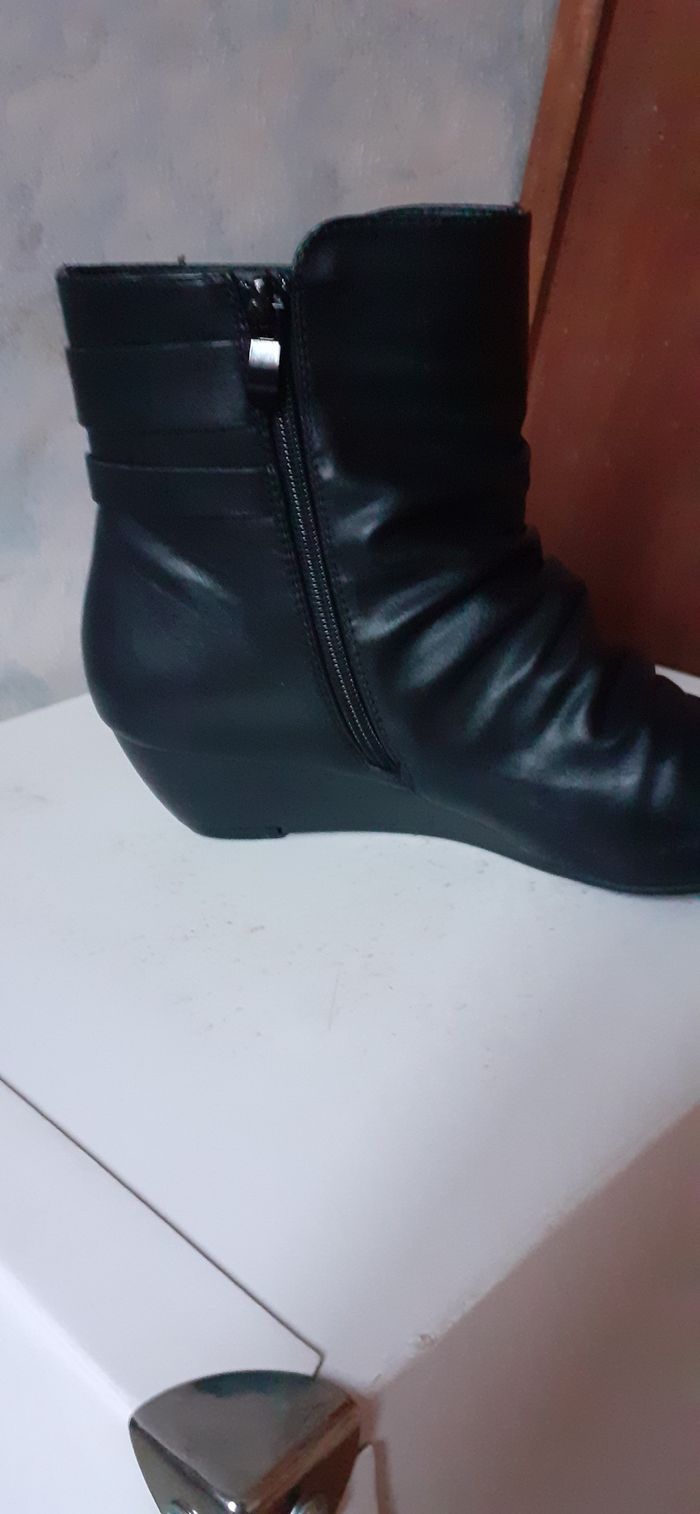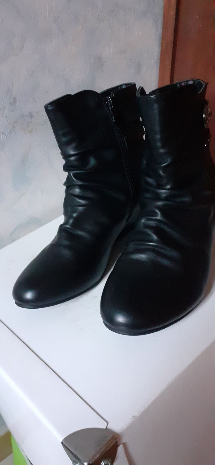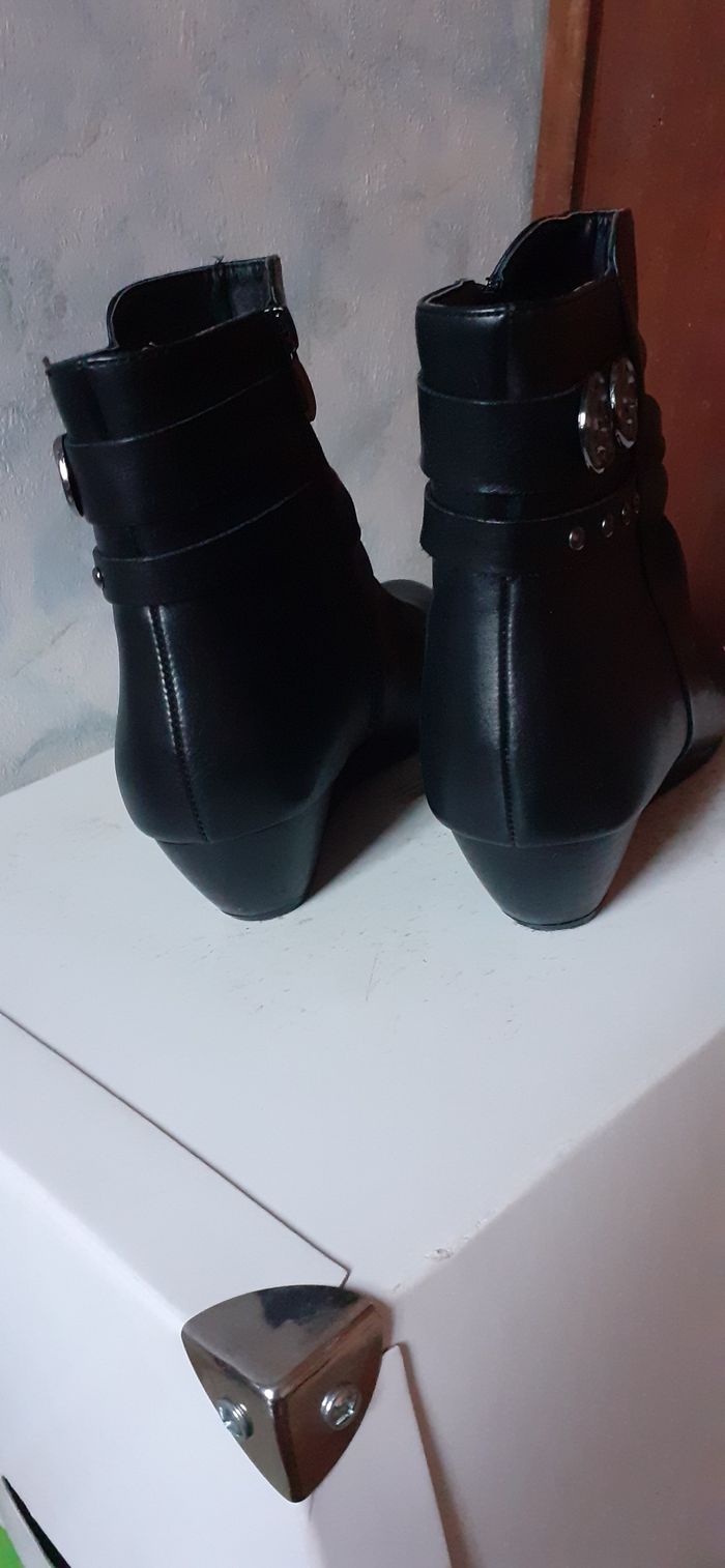 Vends une paire de bottines basses en cuir avec semelle en cuir, plissées sur le coup du pied, petit talon de 3,5 cm, pas du tout abîmées, marque Via Donna de Chausséa, pointure 38.