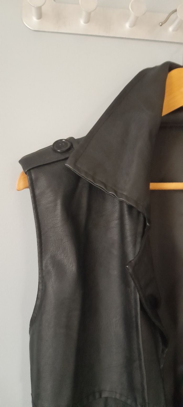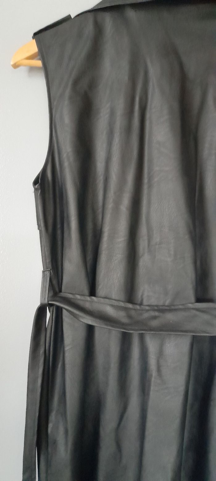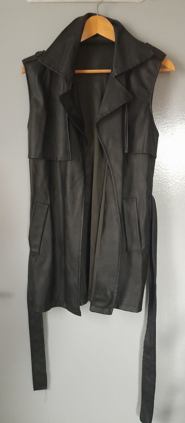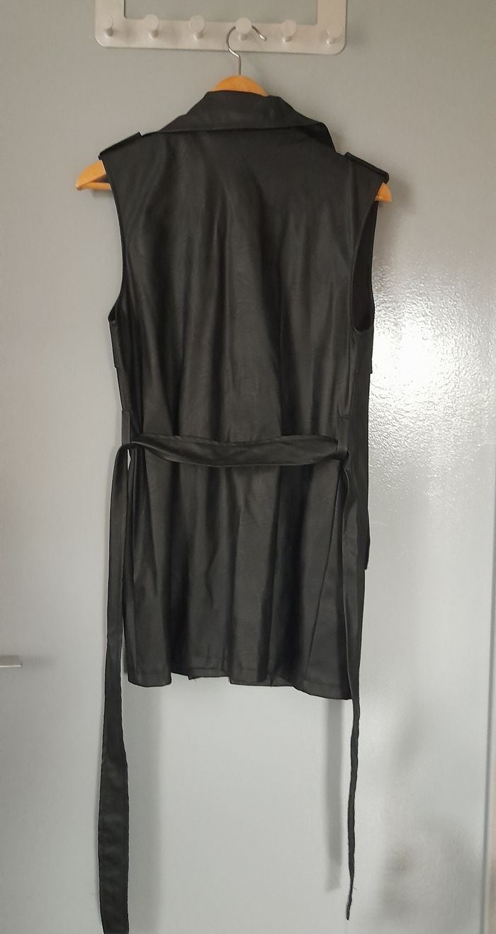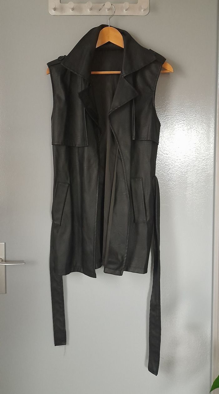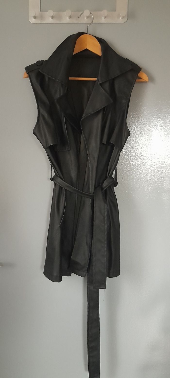 Jolie veste trench sans manches en simili cuire.