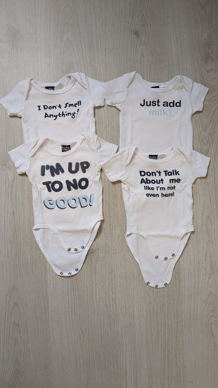 Lot 4 bodies à message 3-6 mois - photo numéro 1