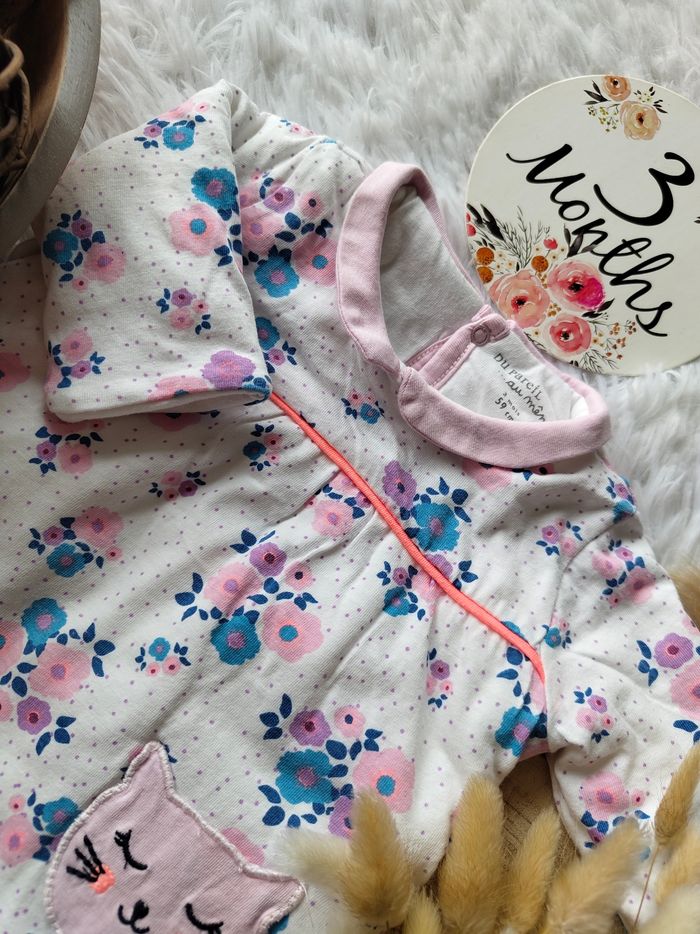Pyjama molleton fleuri DPAM fille 3 mois 🎀