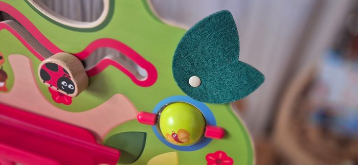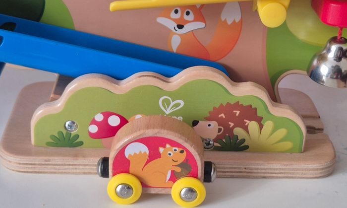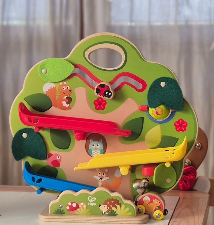 Très joli jeu en bois de la marque Hape, idéal pour développer la motricité fine, la coordination et l’observation.